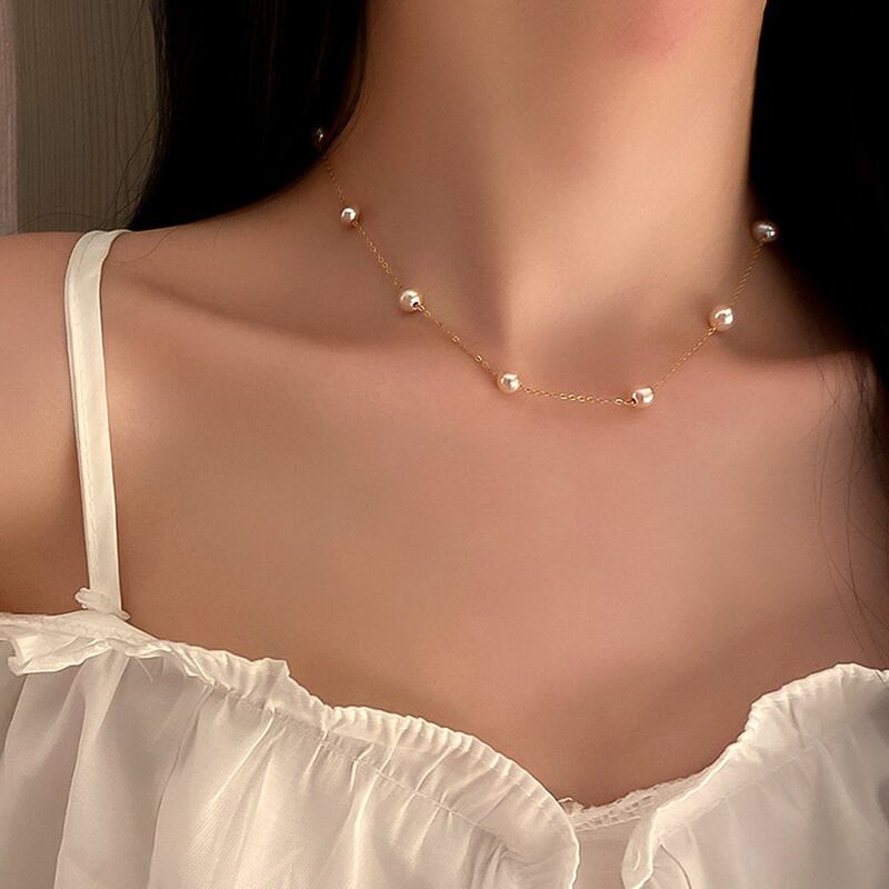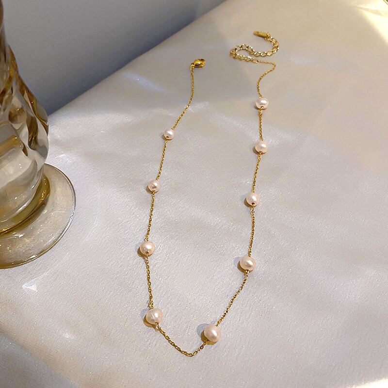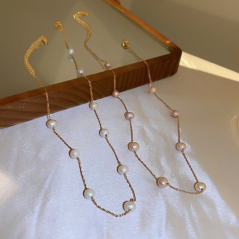 14 18k リアルゴールドパール鎖骨チェーンネックレス女性気質ジュエリーウェディングパーティーガールギフトイン レース 真珠