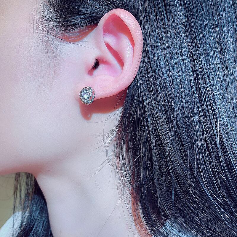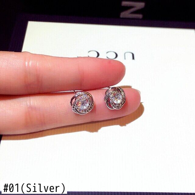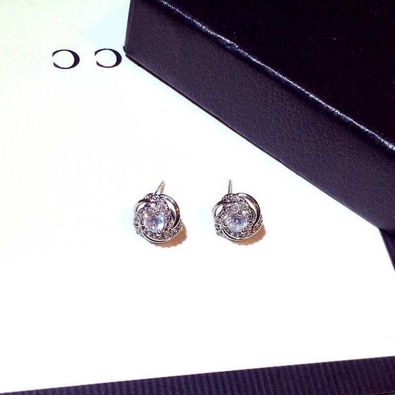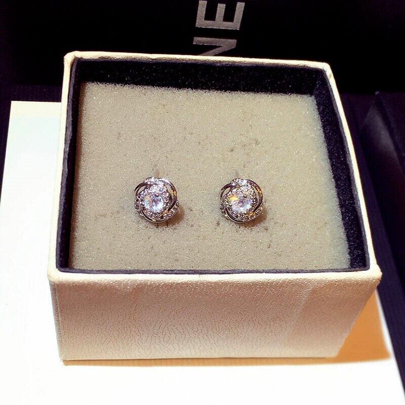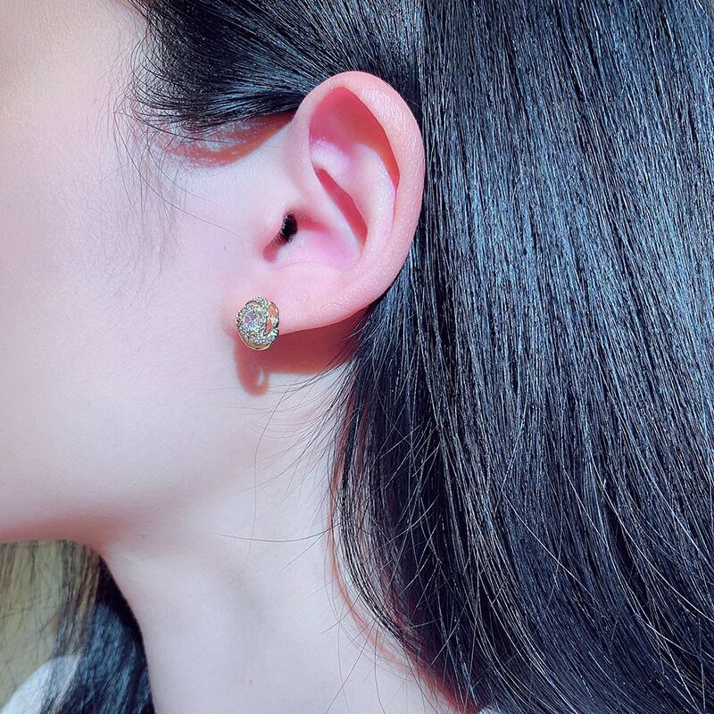ファイン 14 18K リアルゴールドラウンドクリスタルイヤリング女性ジュエリーシャイニー AAA ジルコン S925 シルバーニードルギフト 指輪 銀