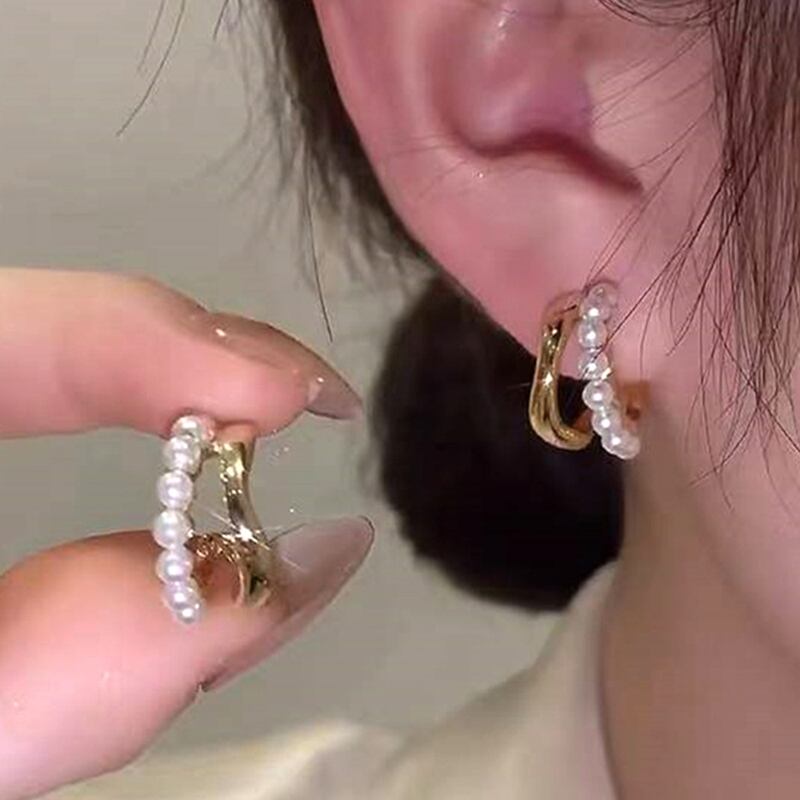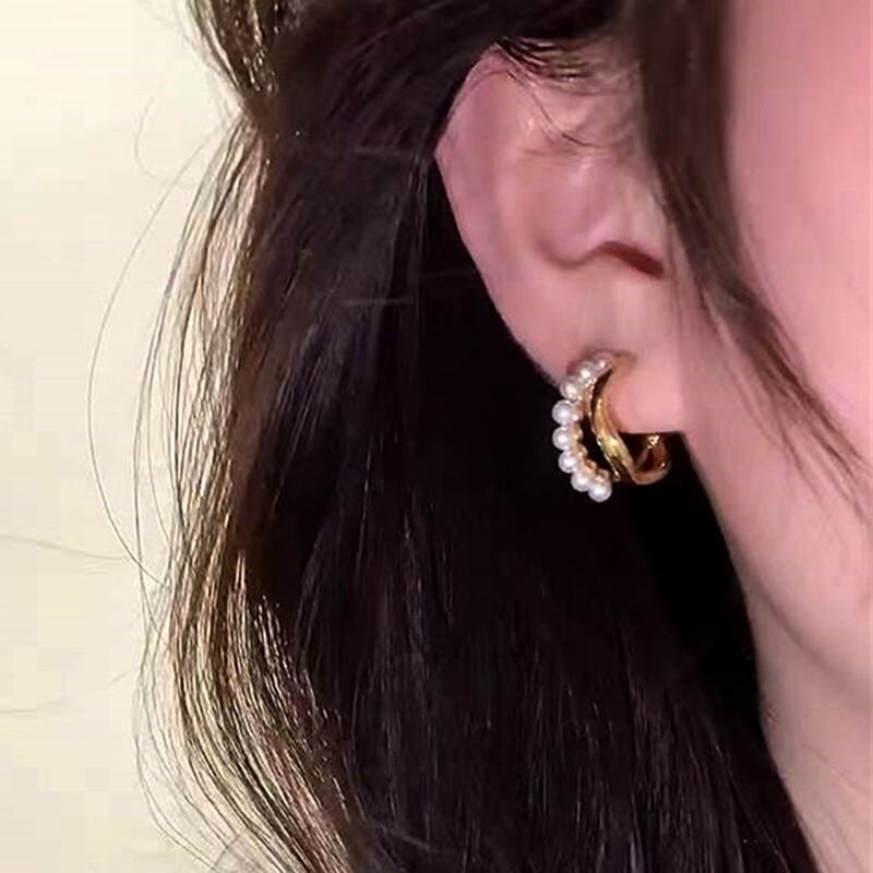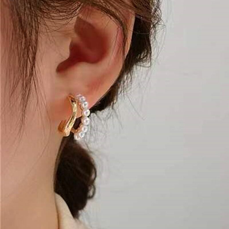 トレンディな 14 18k リアルゴールドメッキ幾何学波真珠イヤリング女性の高級ジュエリー S925 シルバー針アクセサリー パール 指輪 銀