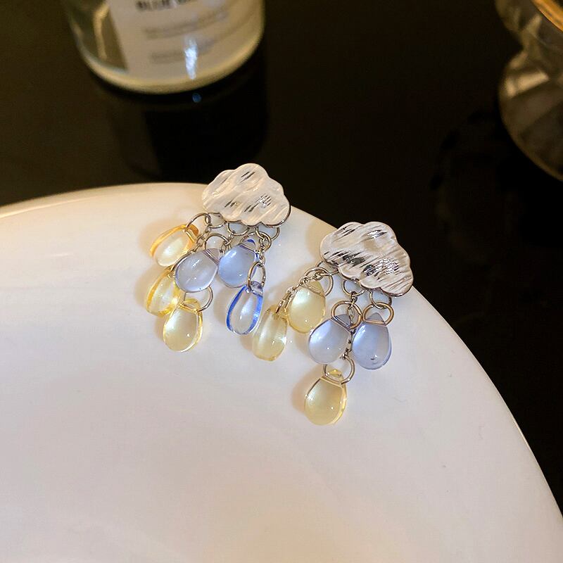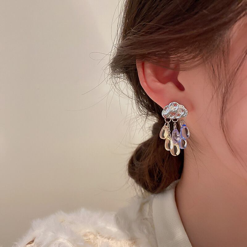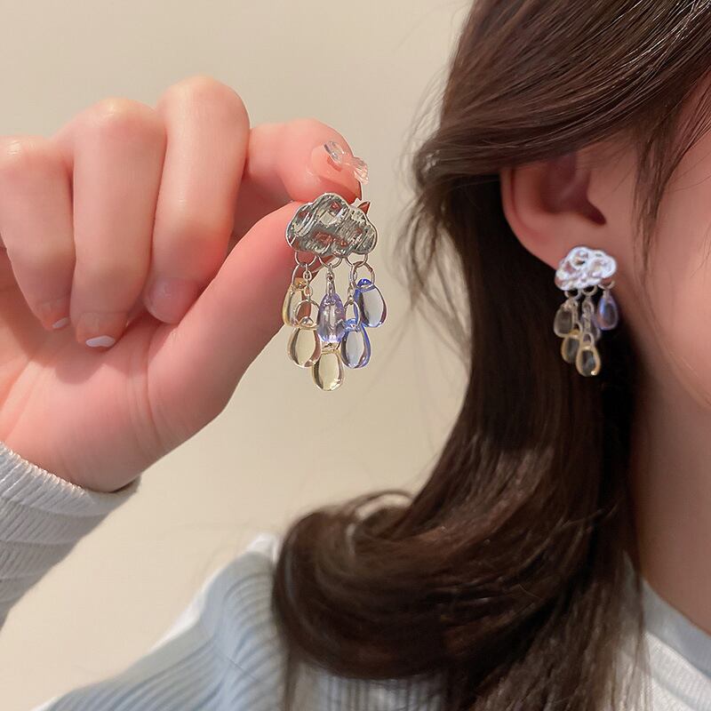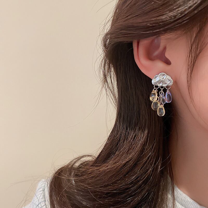 トレンディなメッキシルバー雲水 Tel イヤリング女性ガールジュエリー S925 シルバー針パーティーギフト 指輪 銀