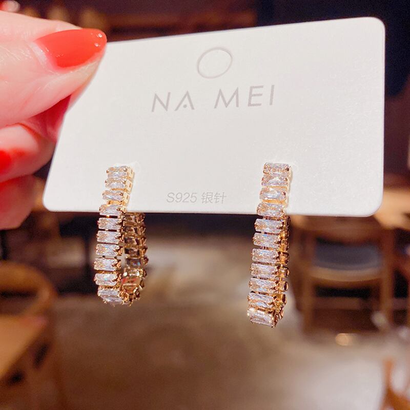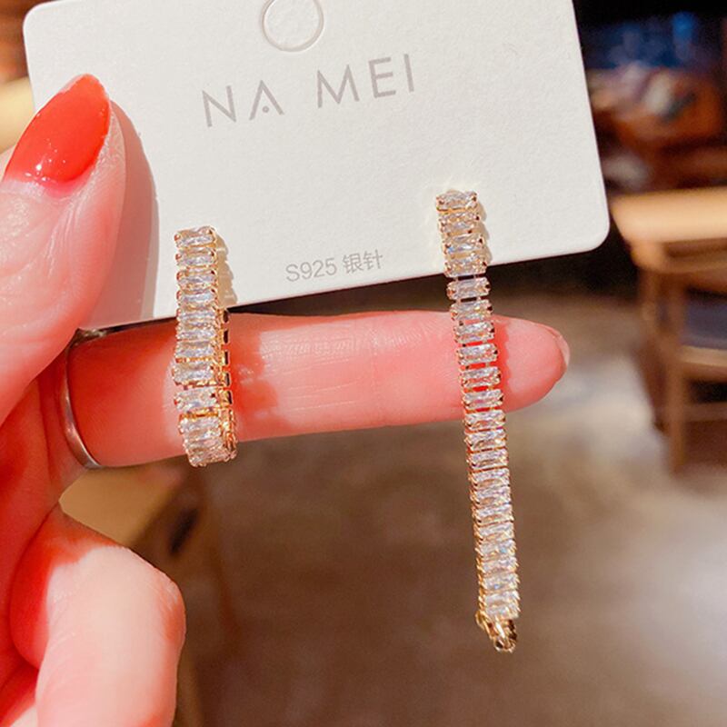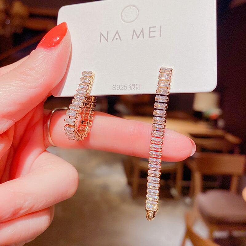 ファイン 14 18k リアルゴールド幾何クリスタルイヤリング女性ジュエリーシャイニー AAA ジルコン S925 シルバーニードルホット 指輪 銀