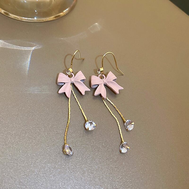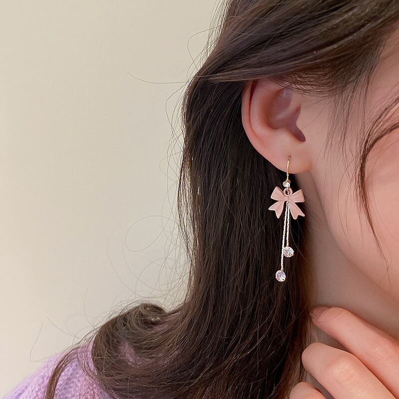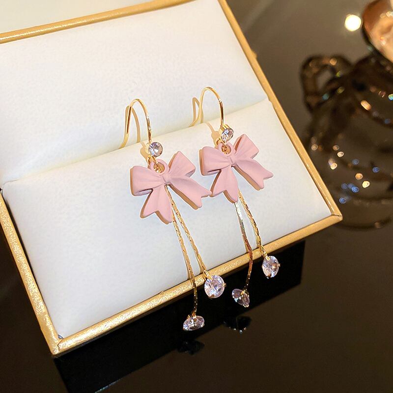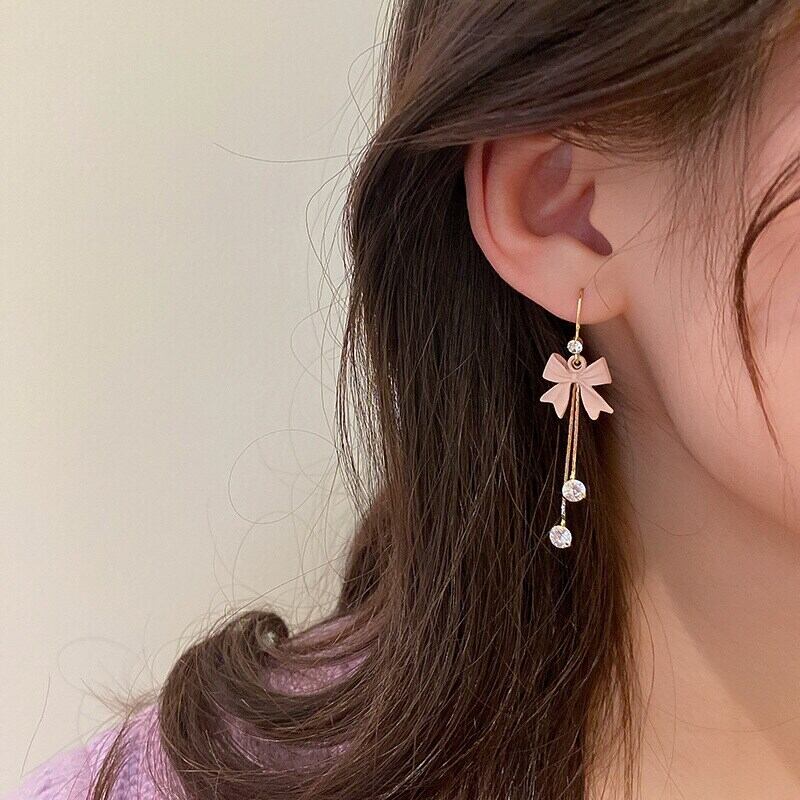 トレンディな 14 18K リアルゴールドメッキちょう結び Tel イヤリング女性ガールジュエリー S925 シルバーニードル AAA ジルコン リボン 指輪 銀