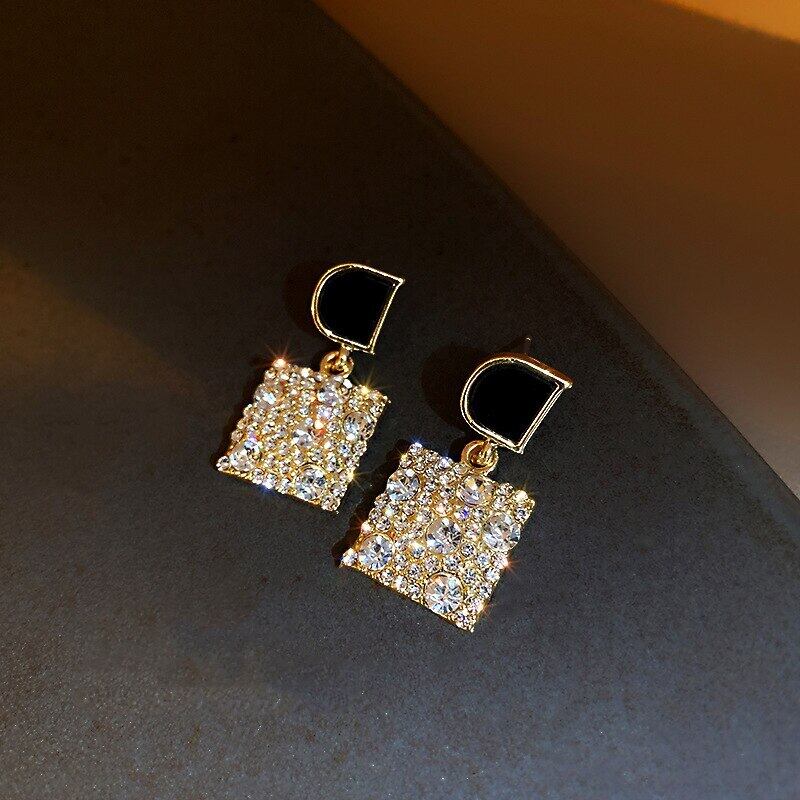 トレンディな 14 18K リアルゴールドメッキ幾何学スクエアイヤリング女性ガールジュエリー S925 シルバー針 AAA ジルコン 指輪 銀 スクウェア