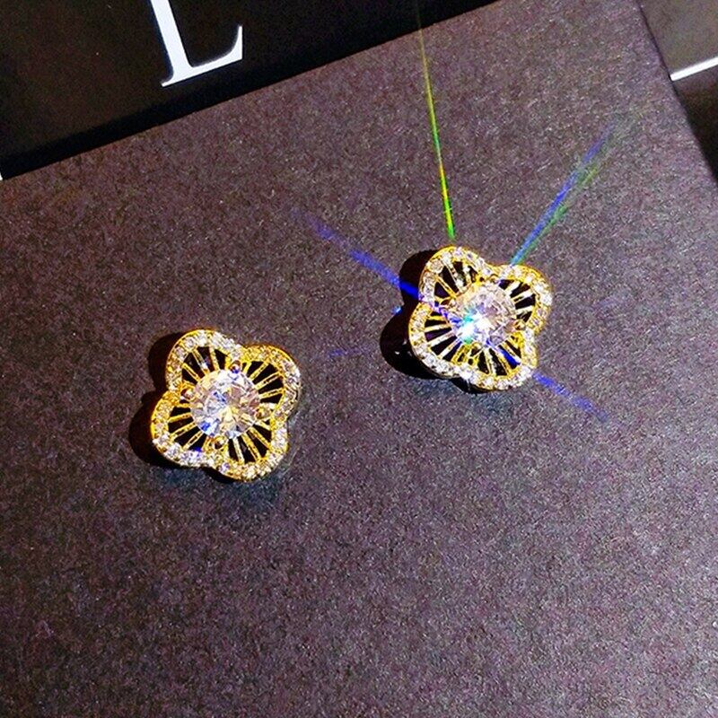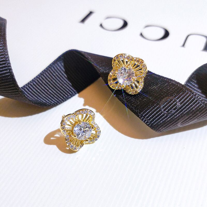 トレンディな 14 18K リアルゴールド植物ラッキー Gr イヤリング女性アクセサリージュエリー S925 シルバー針シャイニージルコンホット 指輪 銀