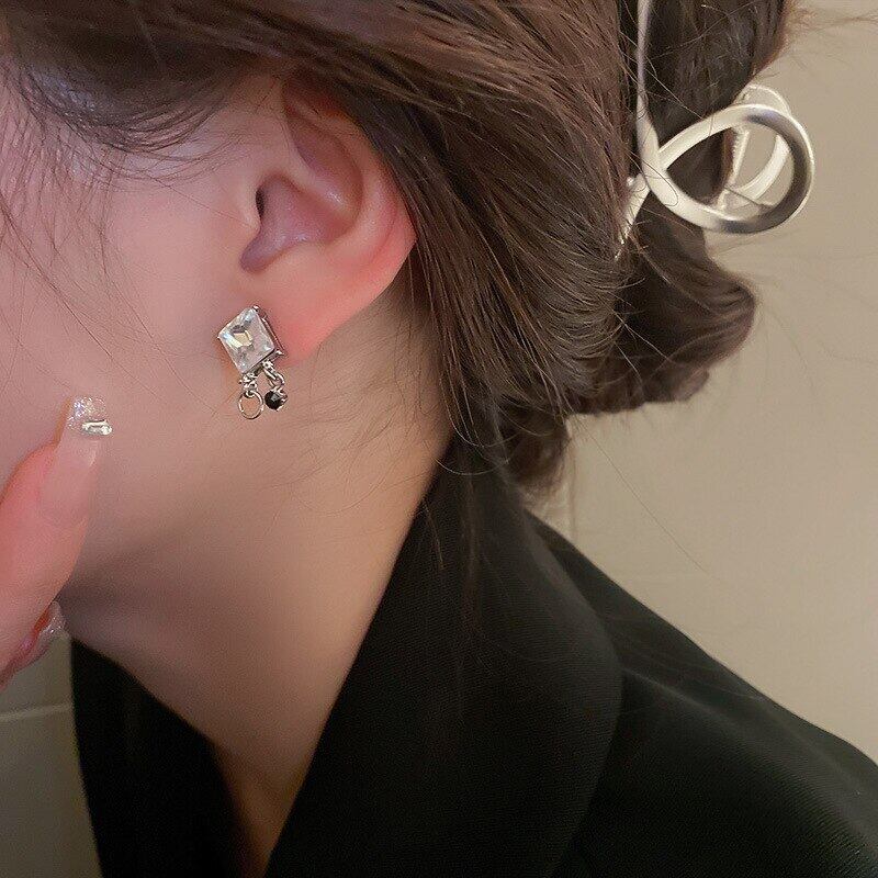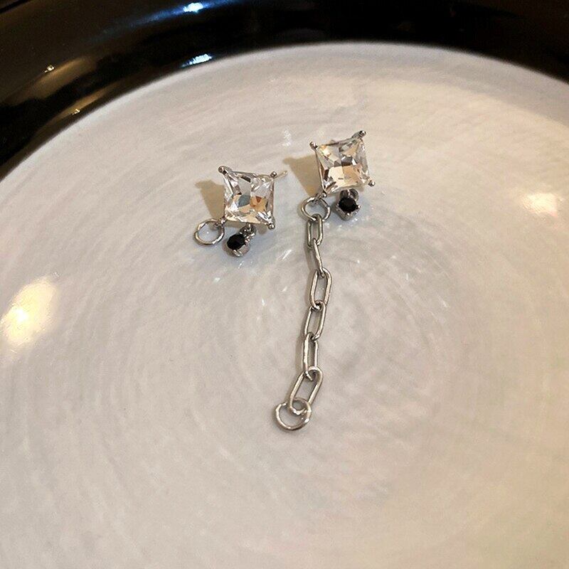 ファイン メッキ シルバー スクエア クリスタル チェーン イヤリング女性ガール ジュエリー aaa ジルコン S925 シルバー針ギフト 指輪 銀 スクウェア