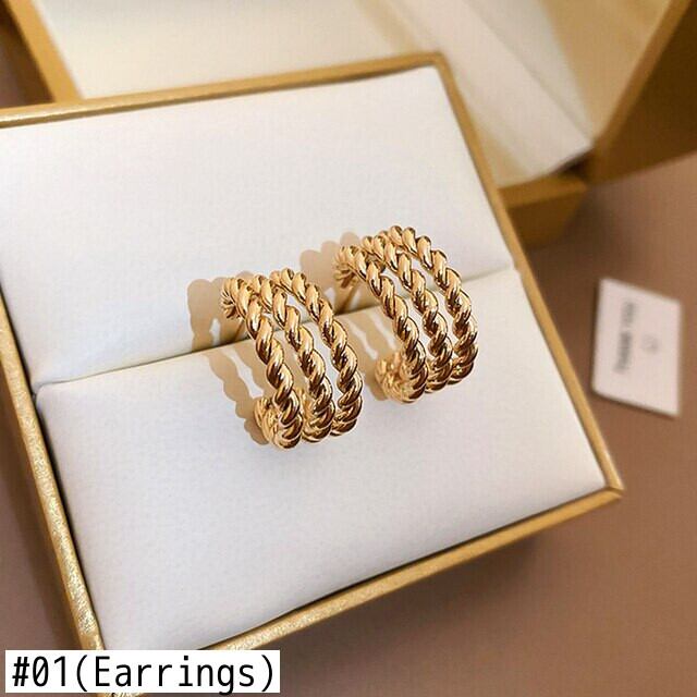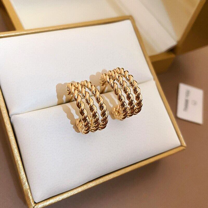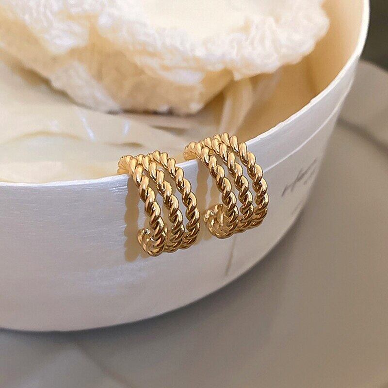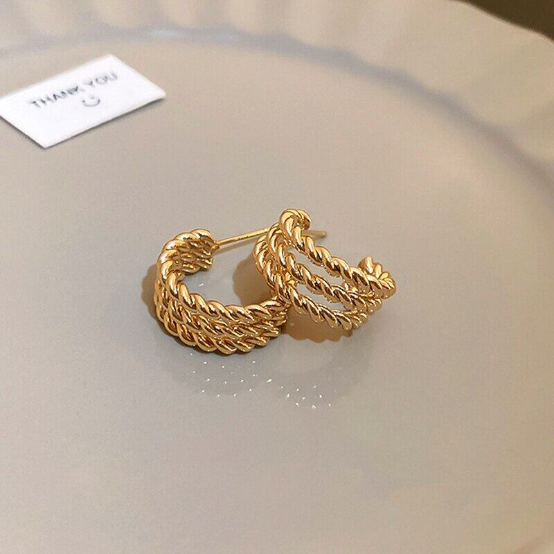 ファイン 14 18K リアルゴールドメッキツイストロープ形状イヤリング女性ガール気質ジュエリー S925 シルバーニードルスタッド 指輪 銀