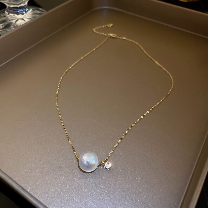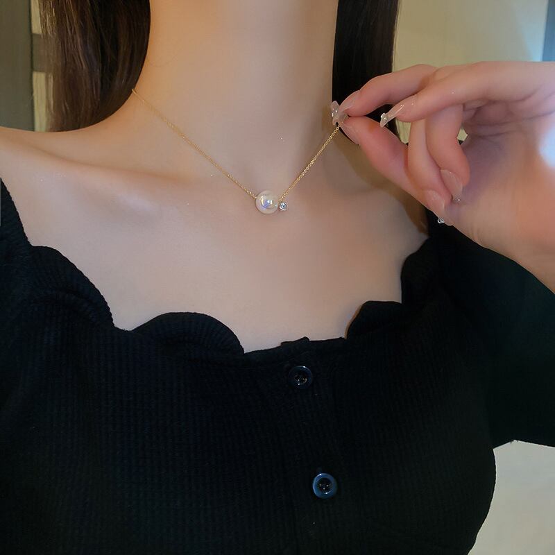 トレンディファイン 14 18k リアルゴールドメッキ幾何学真珠のペンダントチェーンネックレス女性ガールアクセサリージュエリージルコン レース パール