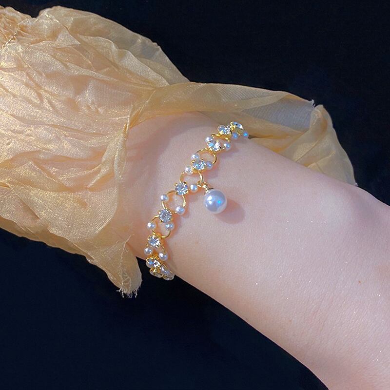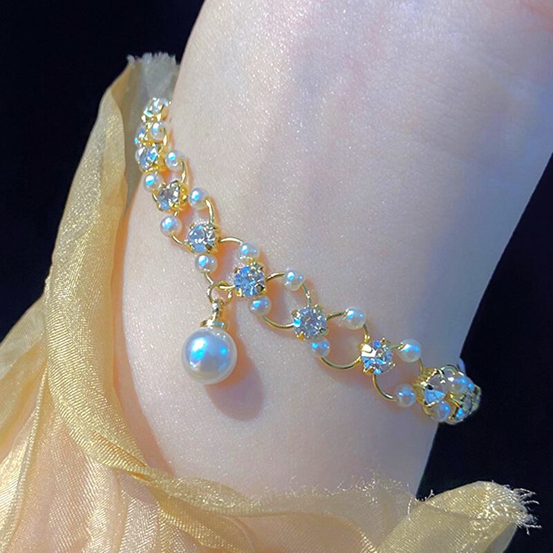 トレンド 14K リアルゴールドメッキ 幾何学的パールブレスレット レディース ガール アクセサリー ジュエリー AAA ジルコン 真珠