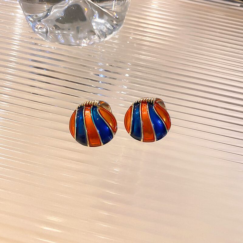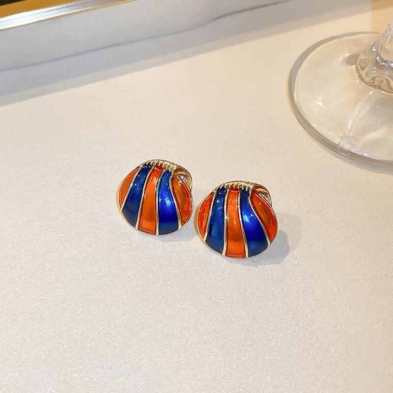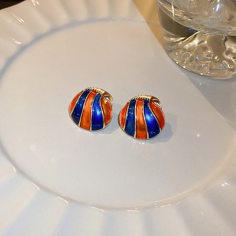 ファイン 14 18K リアルゴールドメッキエナメルシェルサークルイヤリング女性ガールジュエリー S925 シルバーニードルスタッドパーティーギフト 指輪 銀