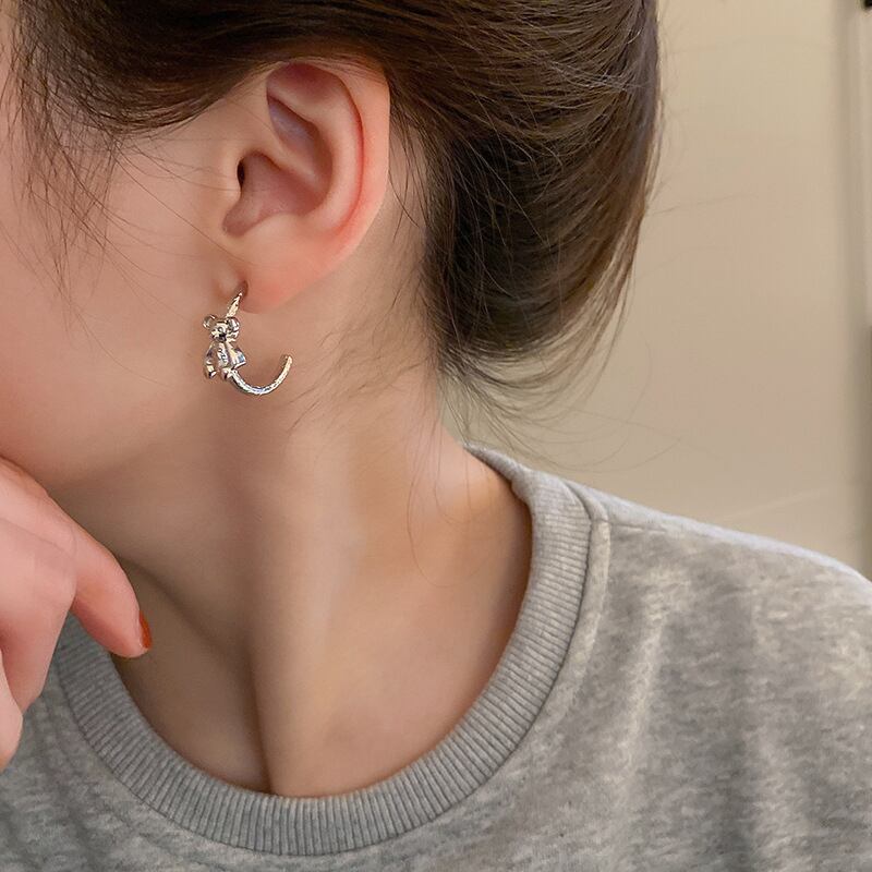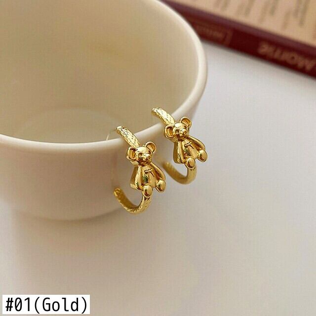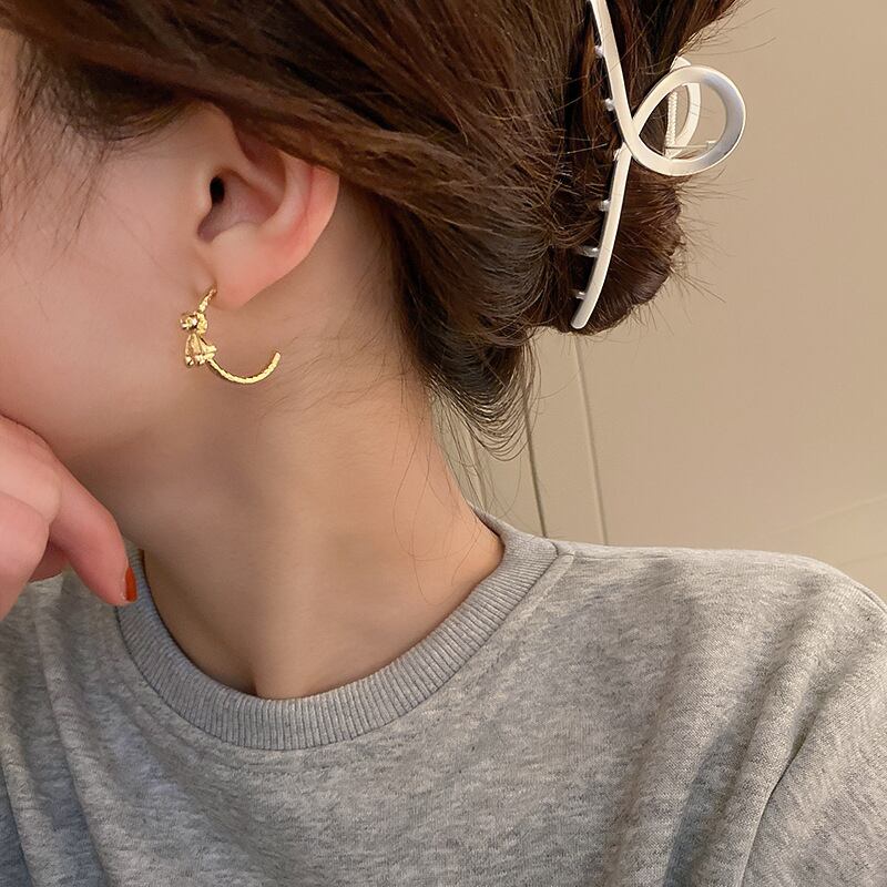 トレンディな 14 18k ゴールドメッキ幾何リトルベア C 形状フープイヤリング女性ガールジュエリー S925 シルバー針ギフト 指輪 銀