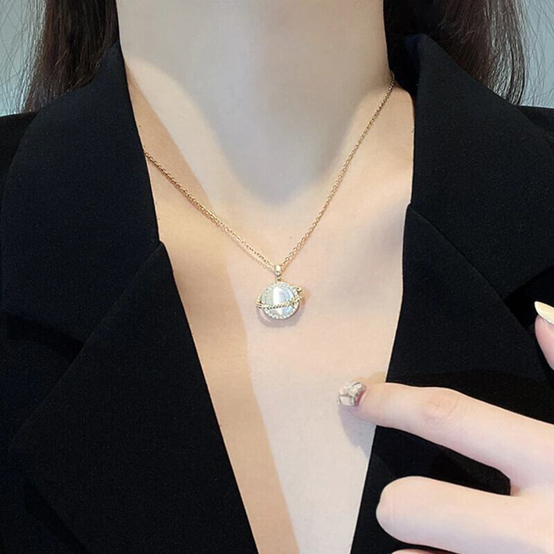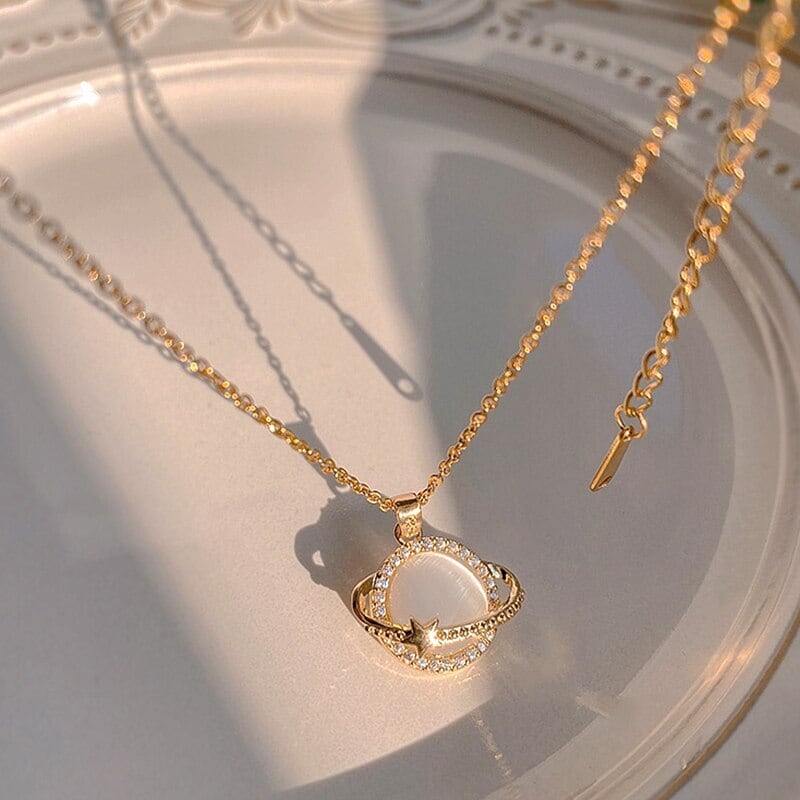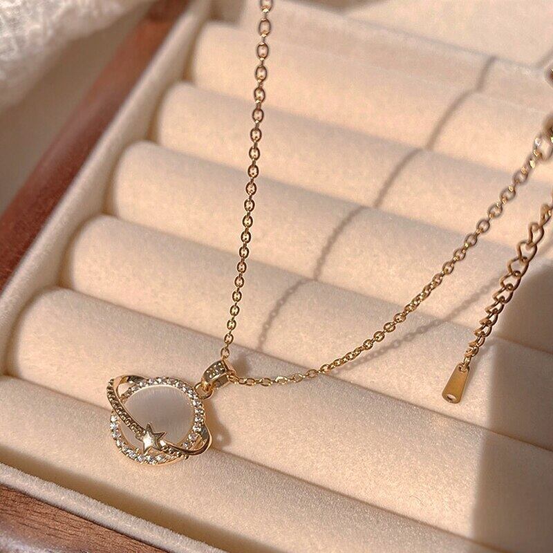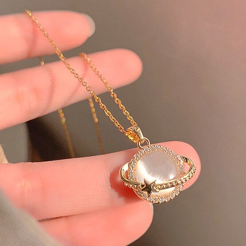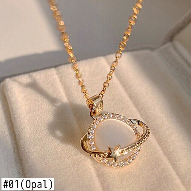 トレンディな 14 18K リアルゴールドメッキプラネットオパールネックレス女性ジュエリーシャイニー AAA ジルコンチタン鋼チェーンギフト レース 蛋白石