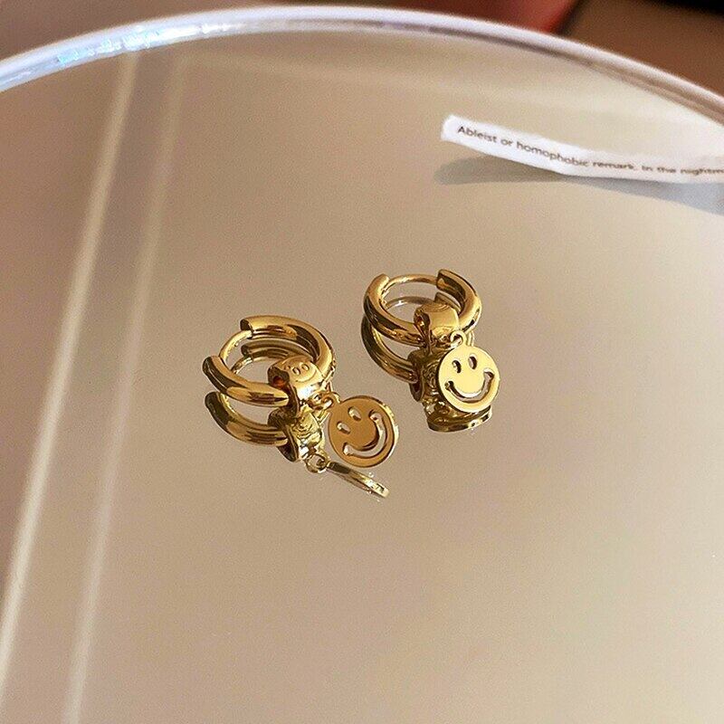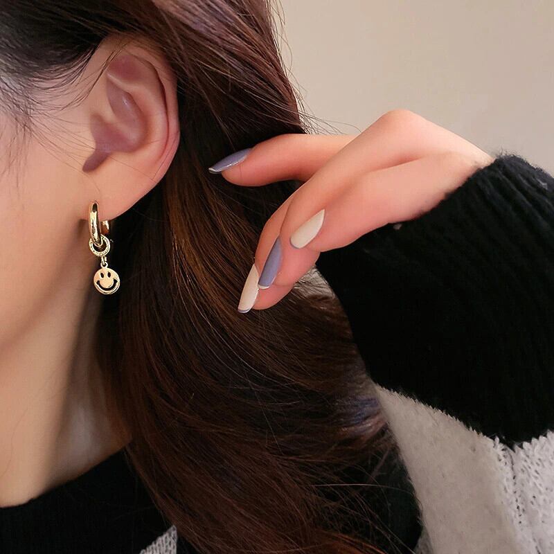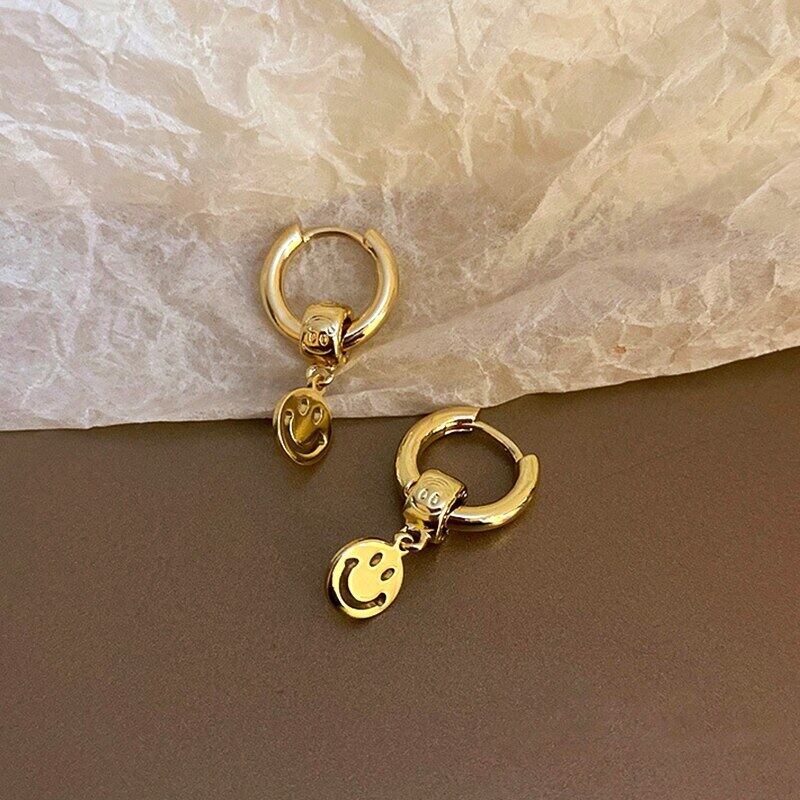 ファイン 14 18K リアルゴールドメッキかわいいスマイリーイヤリング女性ガール気質ジュエリー S925 シルバー針パーティーギフト 大人ガーリー スウィート キュート カジュアル 指輪 銀
