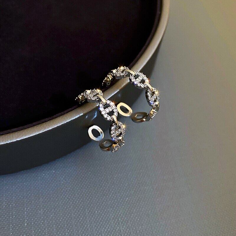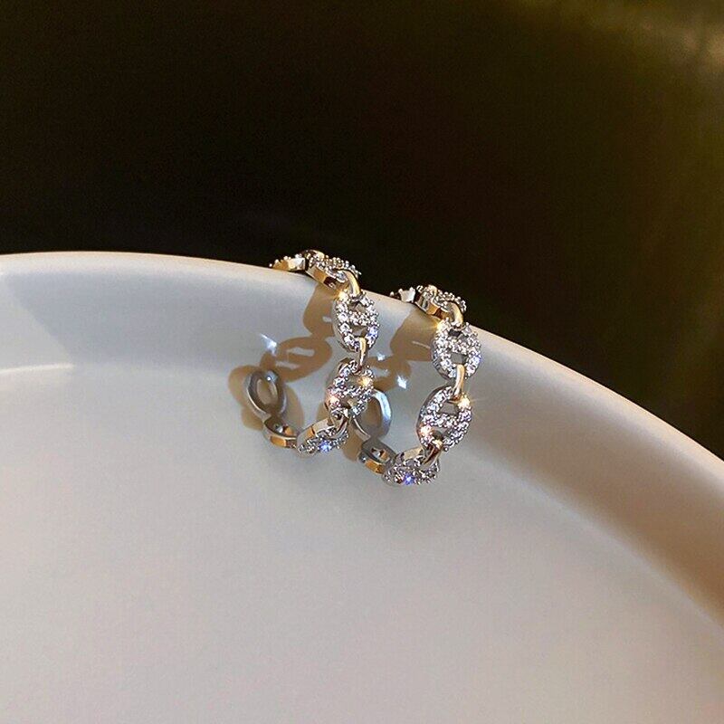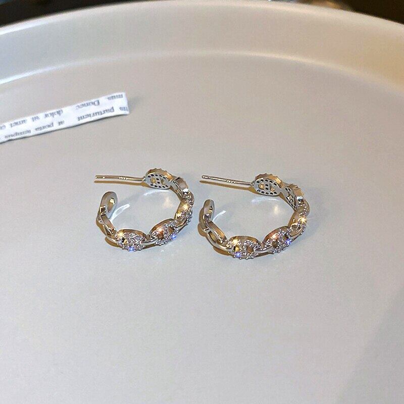 ファインメッキシルバー幾何学 C 形状フープイヤリング女性ガール気質ジュエリー AAA ジルコン S925 シルバー針 指輪 銀