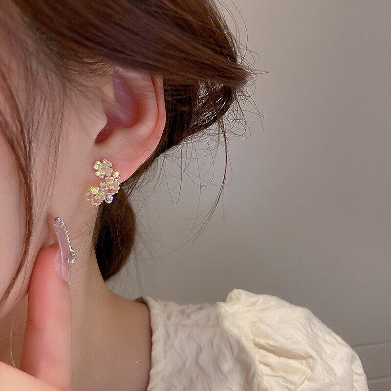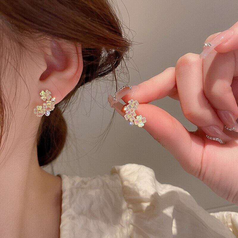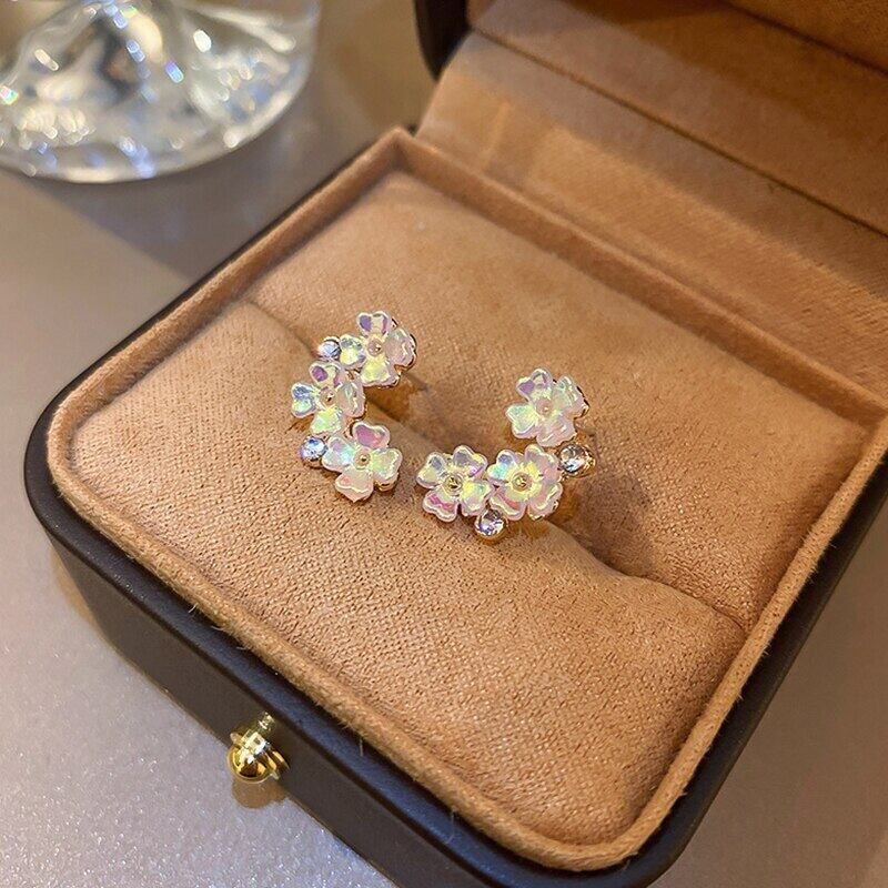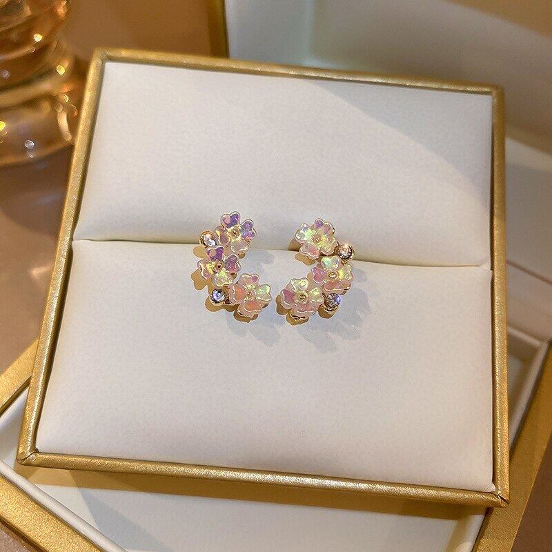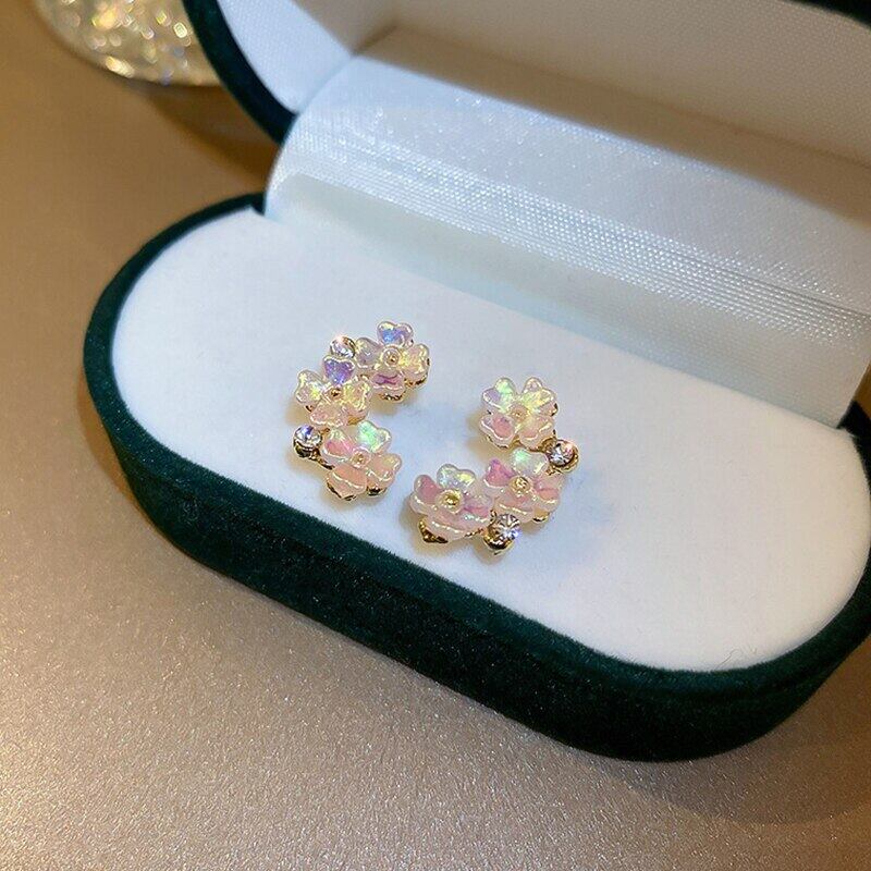 トレンディな 14 18K リアルゴールドメッキ花イヤリング女性ガールジュエリー S925 シルバーニードルスタッドシャイニー AAA ジルコンギフト 指輪 フラワーデザイン 銀