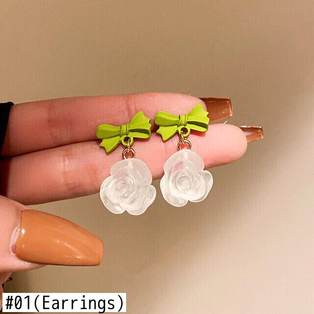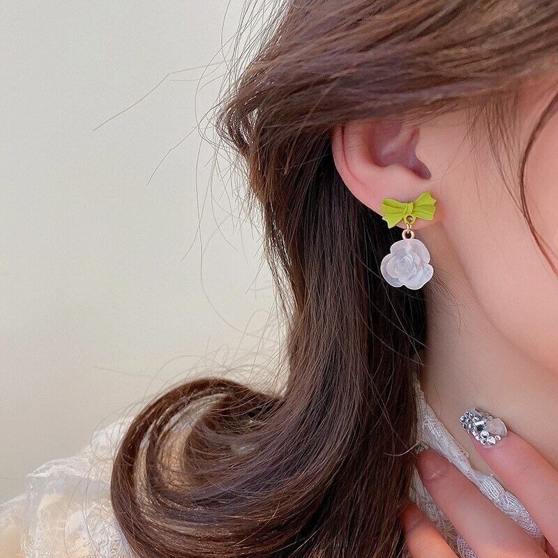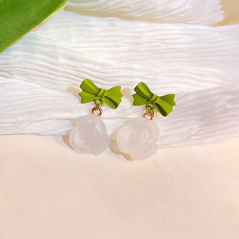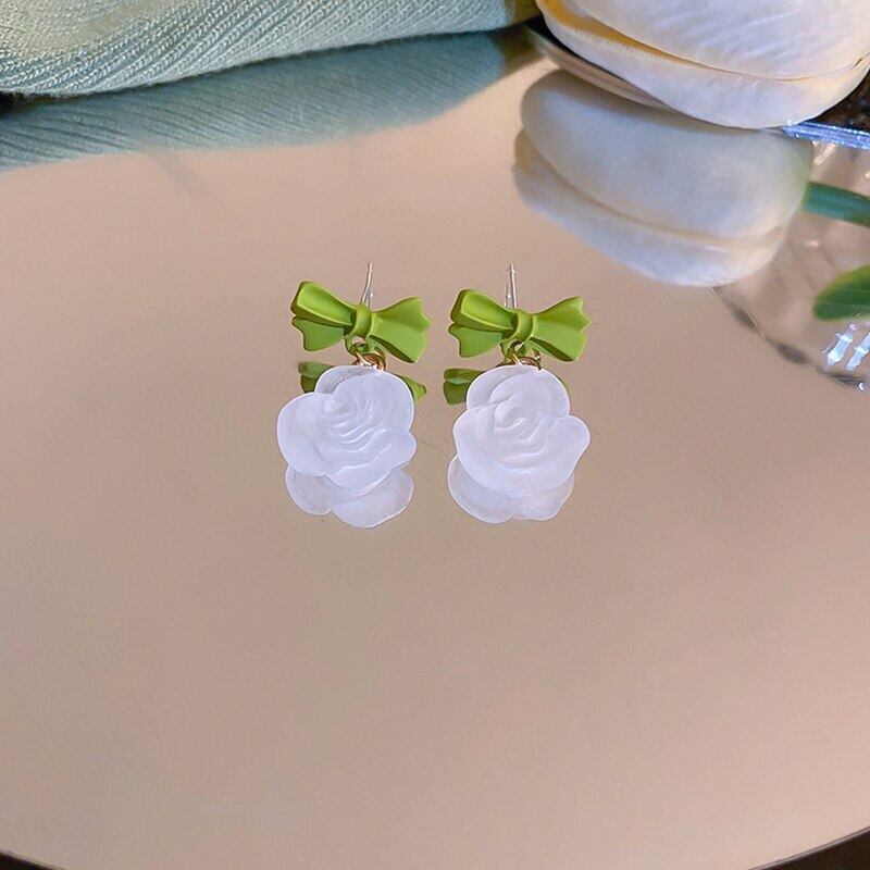 トレンドアクリルちょう結び花イヤリング女性ガールジュエリー S925 シルバー針誕生日パーティーギフト リボン 指輪 フラワーデザイン 銀