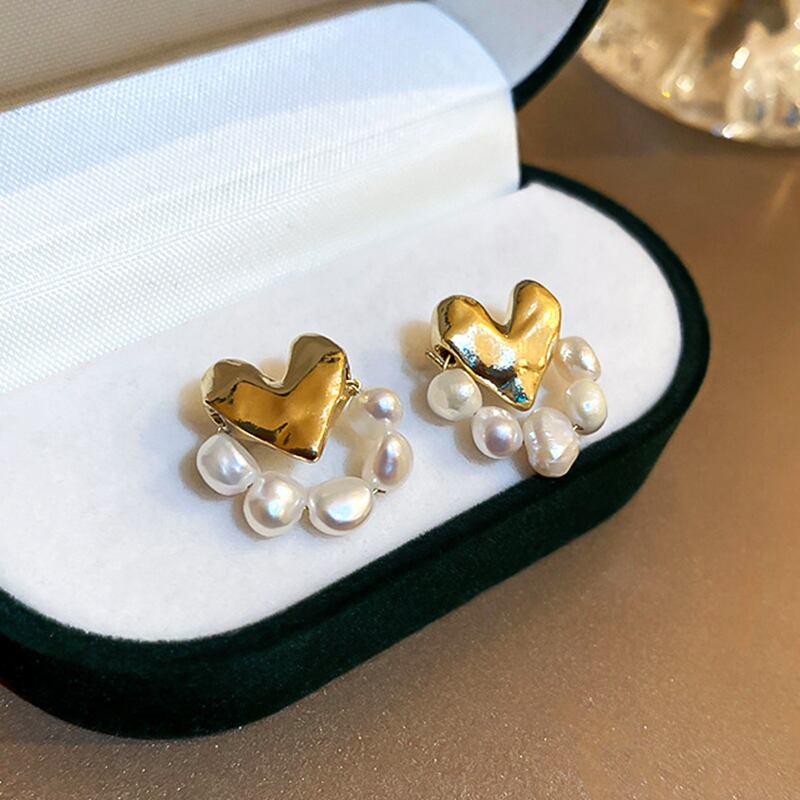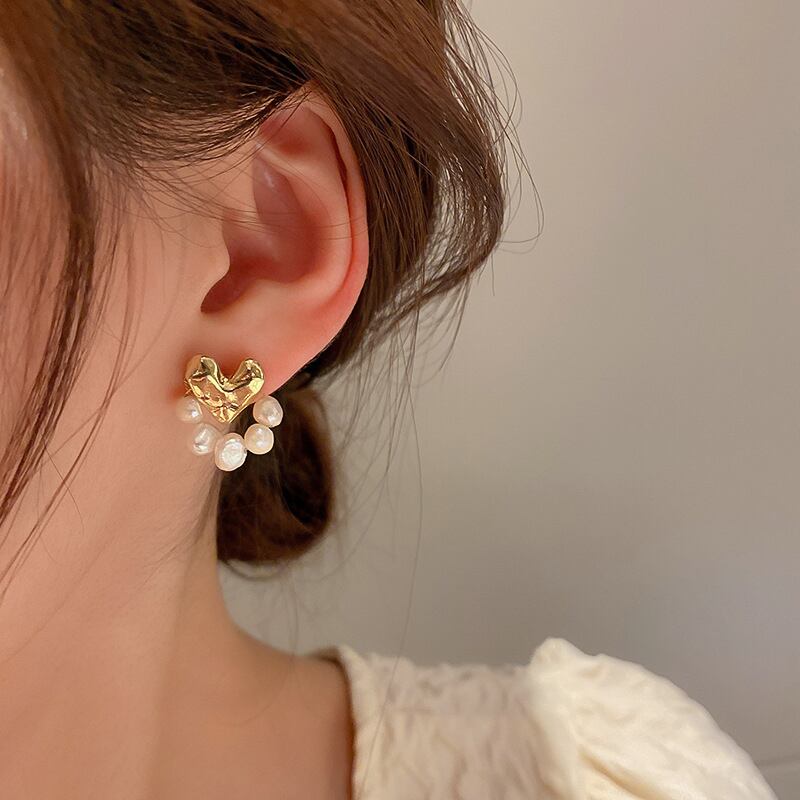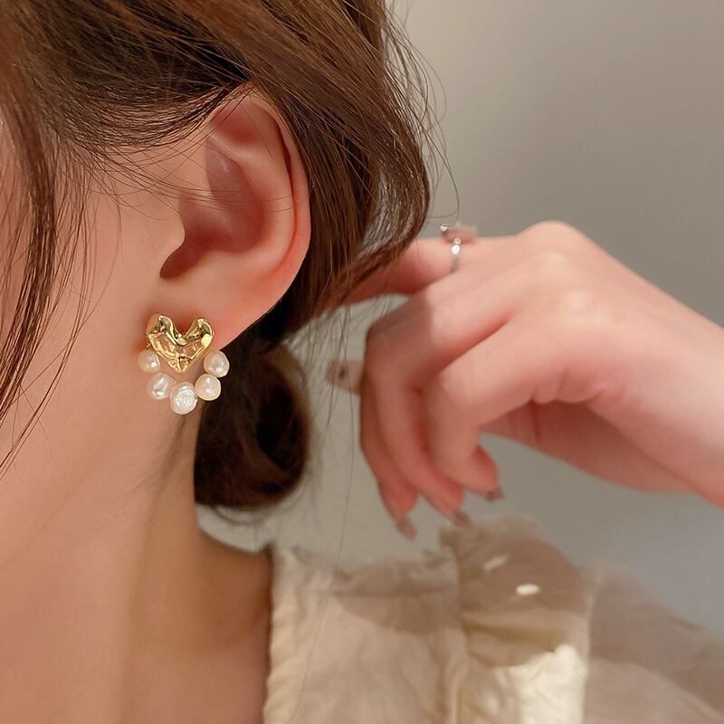 トレンディな 14 18K ゴールドピーチハートパールイヤリング女性ガールバロック人格ジュエリー S925 シルバーニードルスタッド 真珠 指輪 銀