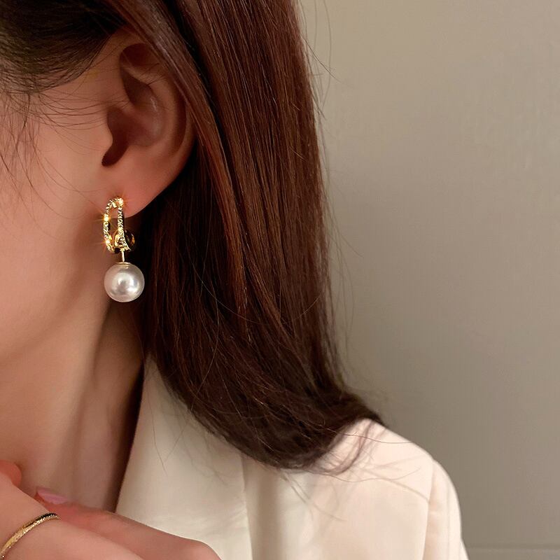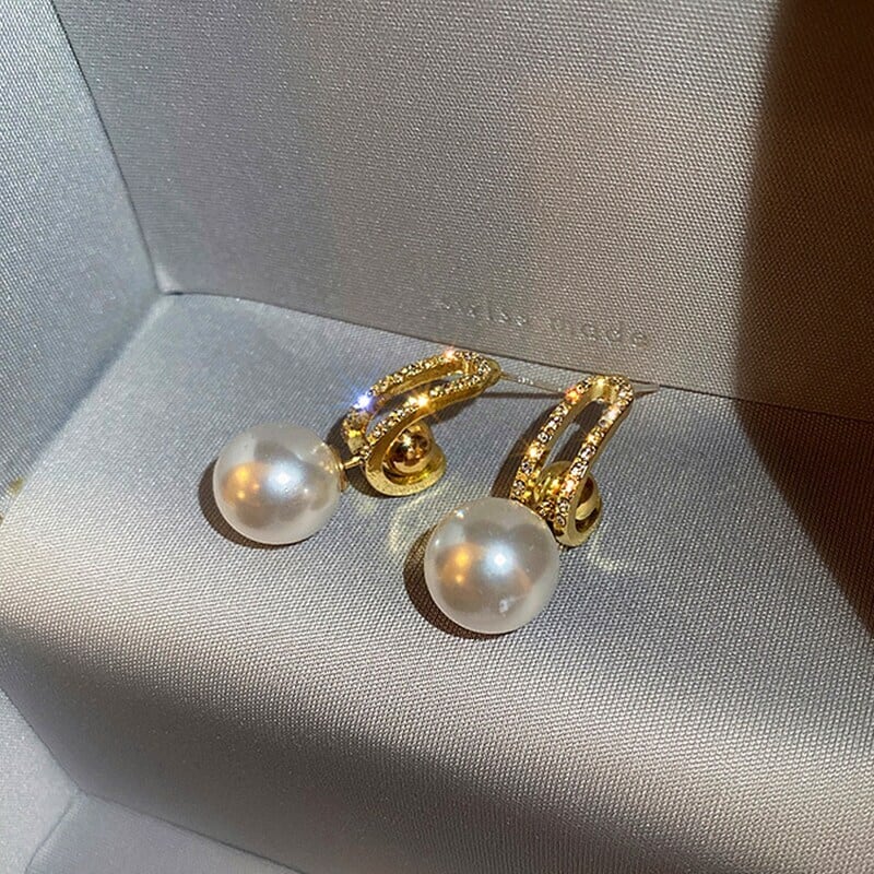 トレンディな 14 18K ゴールドメッキ幾何 C 字型パールイヤリング女性ガールジュエリー S925 シルバーニードルジルコニア 真珠 指輪 銀 風信子石