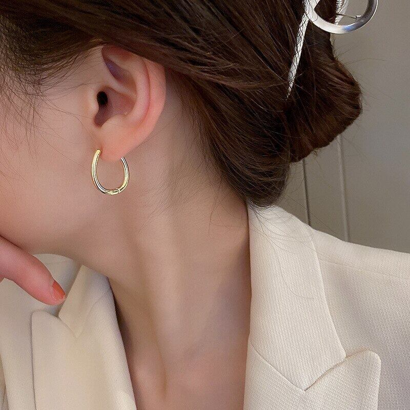 ファイン 14 18k リアルゴールドメッキシンプルな U 字型フープイヤリング女性ガール気質ジュエリーバックルタイプパーティーギフト 指輪