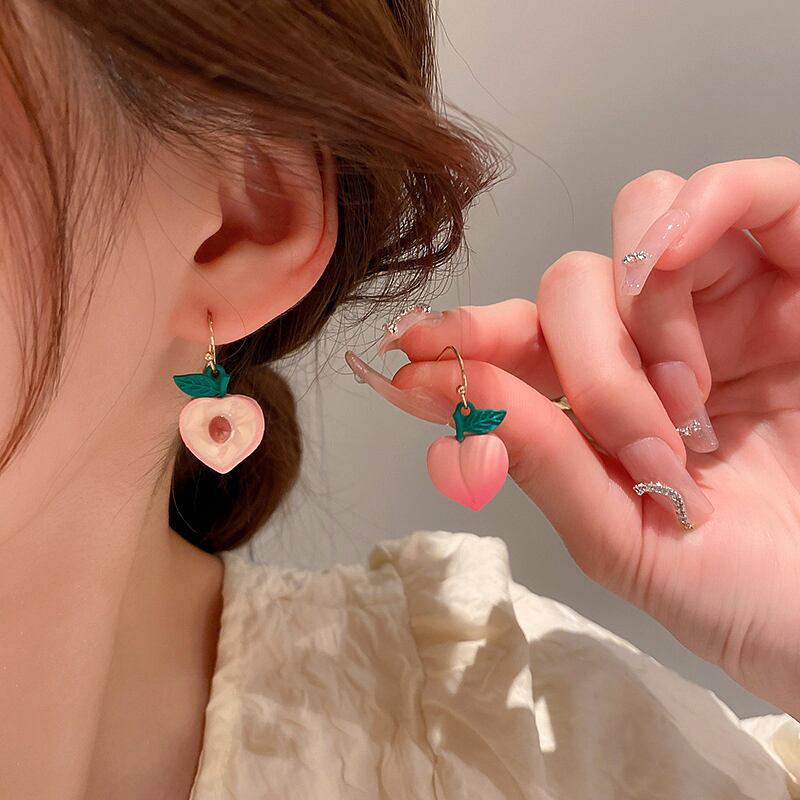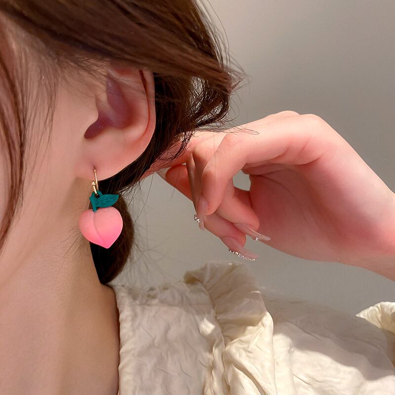 トレンドピンクピーチイヤリング女性ガールジュエリー S925 シルバーニードル結婚式誕生日パーティーギフト 指輪 銀