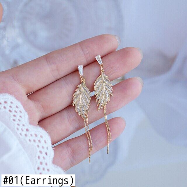 トレンディな 14 18K リアルゴールドリーフ Tel イヤリング女性ガールジュエリー S925 シルバー針 AAA ジルコンパーティーギフト 指輪 銀