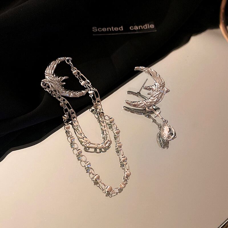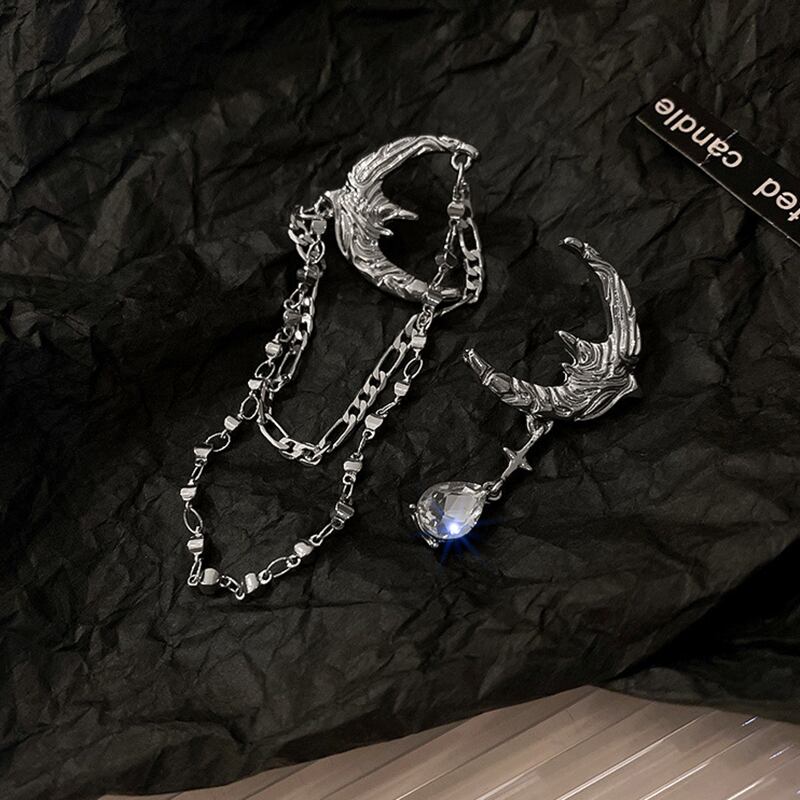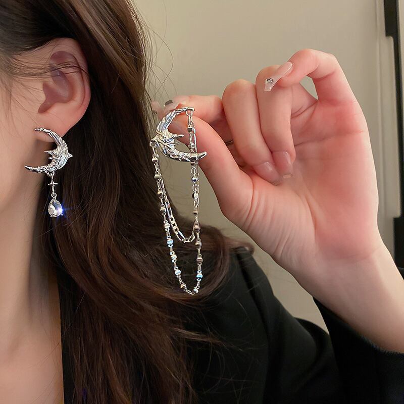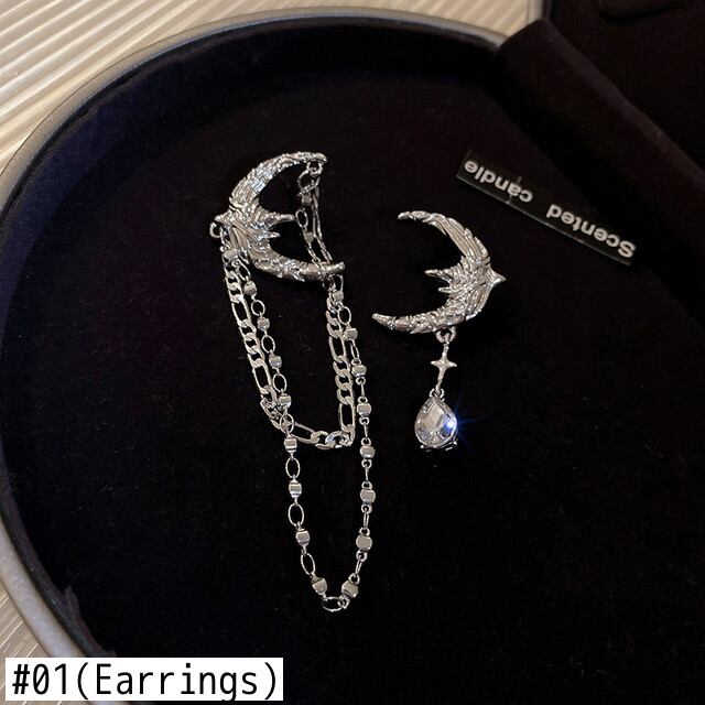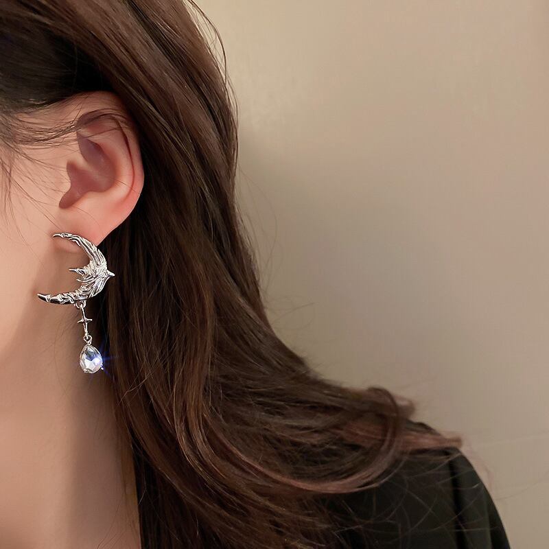 トレンドシルバーメッキムーン Tel イヤリング女性ガールジュエリー S925 シルバーニードル AAA ジルコニアギフト 指輪 銀 風信子石