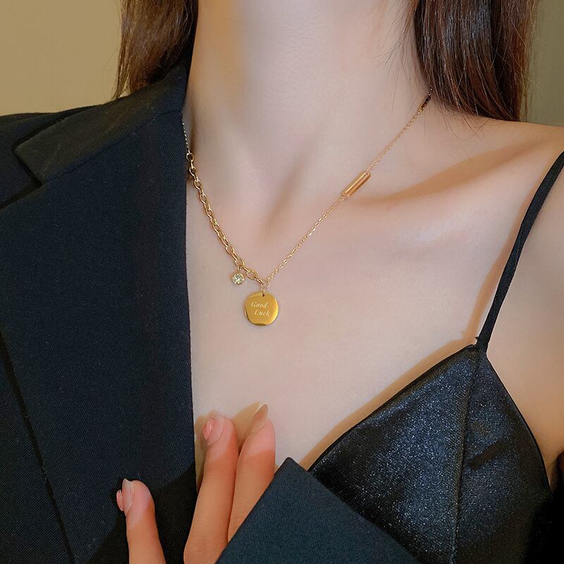 316L ステンレス鋼幸運の手紙ペンダントチェーンネックレス女性ガール気質ジュエリー AAA ジルコンインホットギフト レース