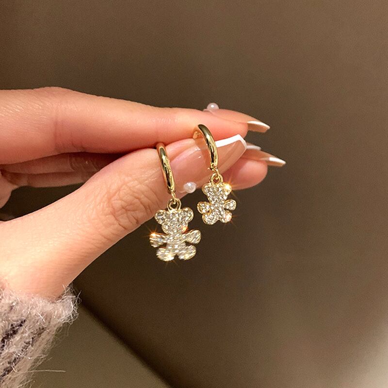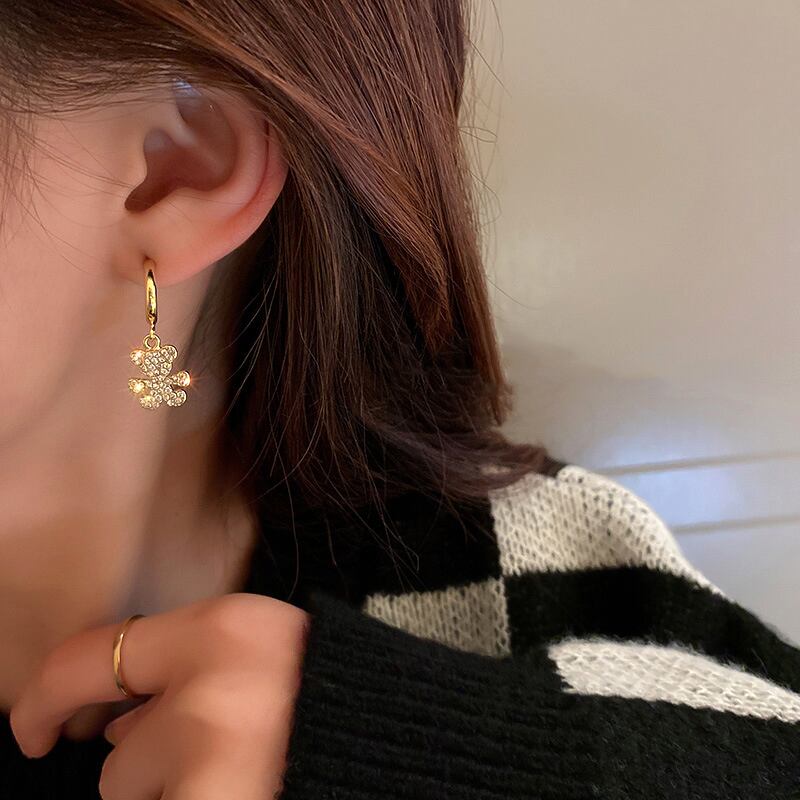 トレンディな 14 18K リアルゴールドリトルベアイヤリング女性ガール非対称ジュエリー S925 シルバー針 AAA ジルコン 指輪 銀
