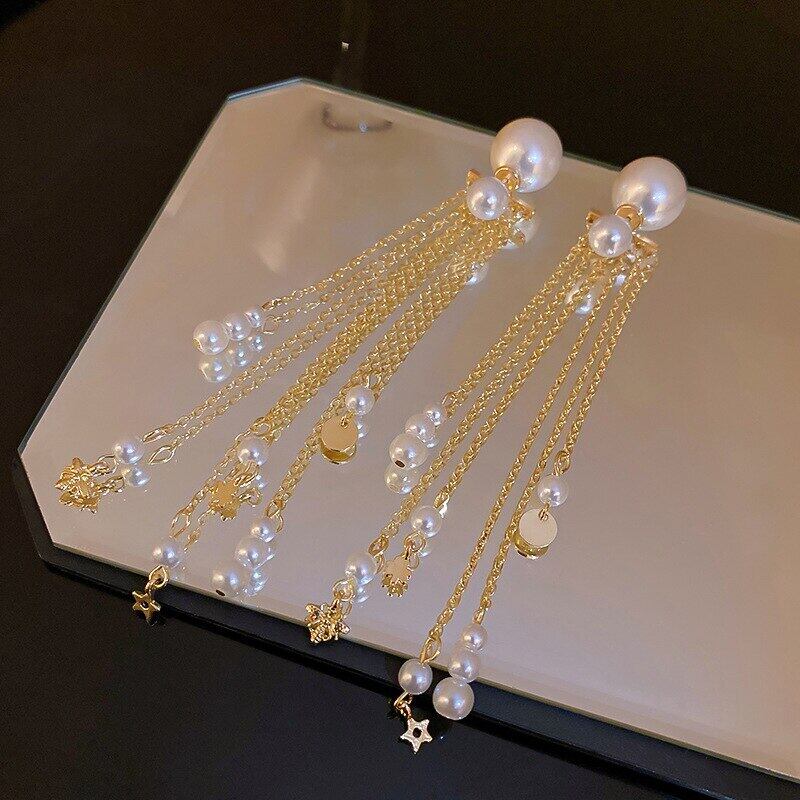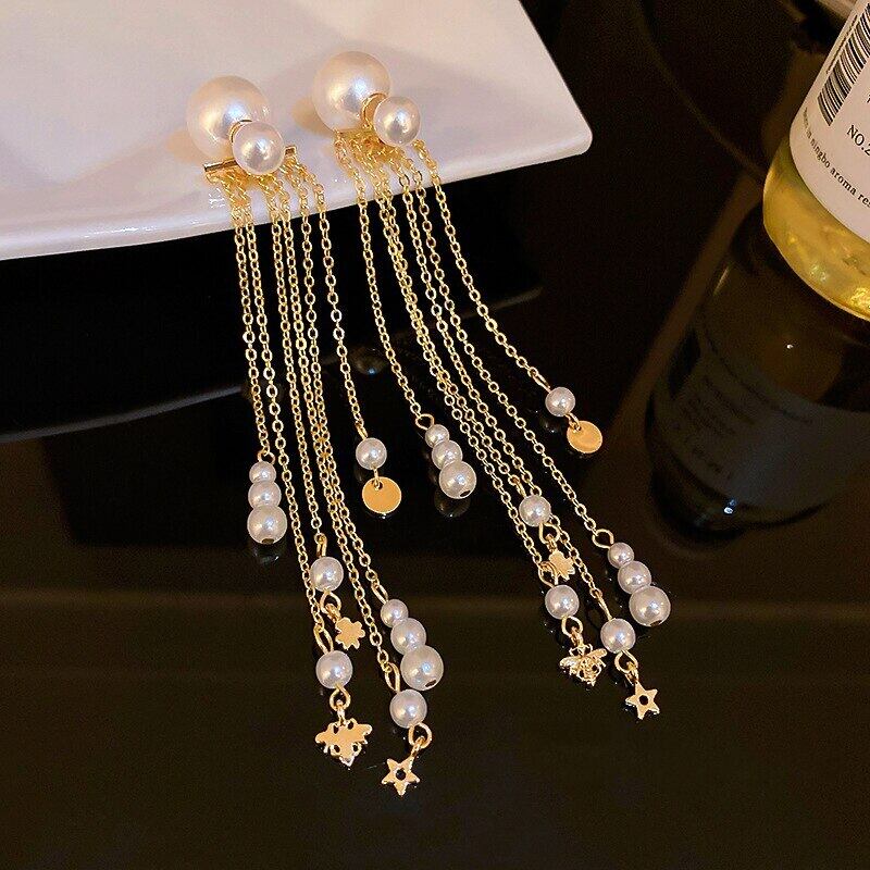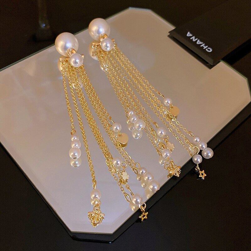 ファイン 14 18k リアルゴールド誇張された真珠 Tel イヤリング女性ガール気質ジュエリー S925 シルバー針ギフト パール 指輪 銀