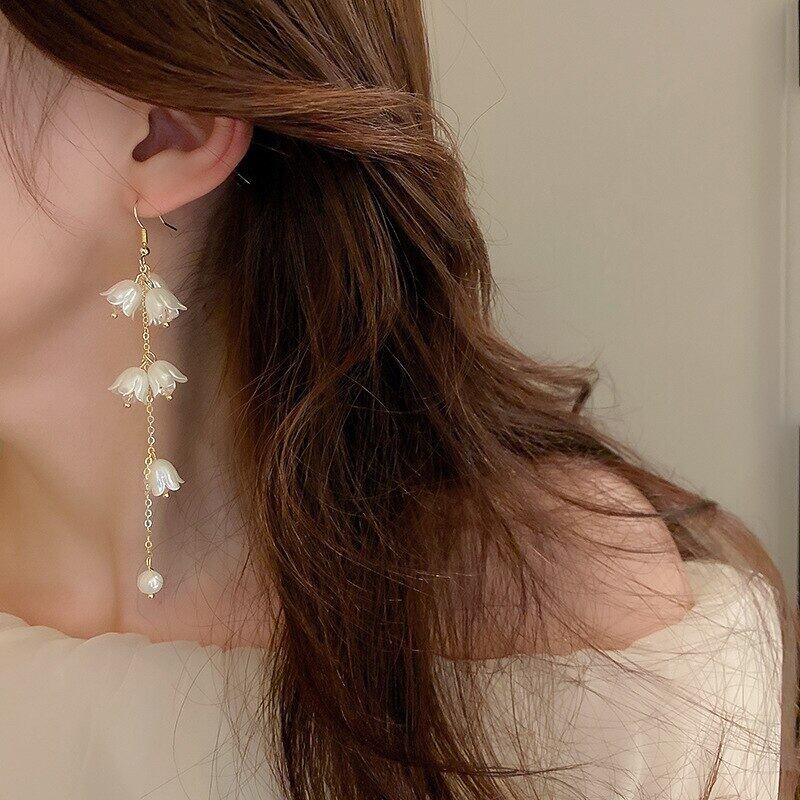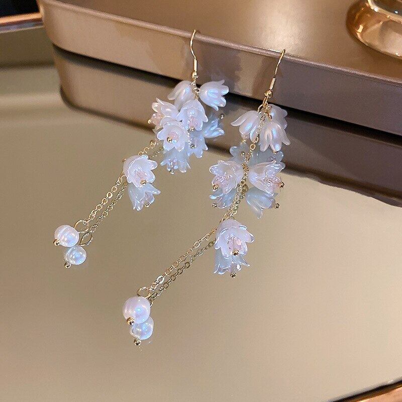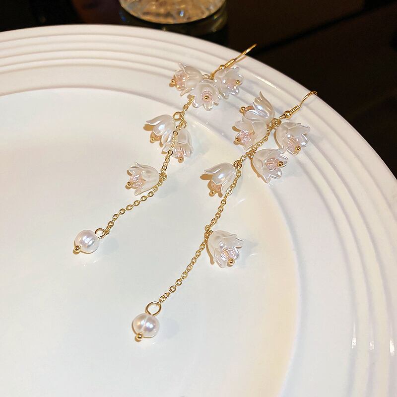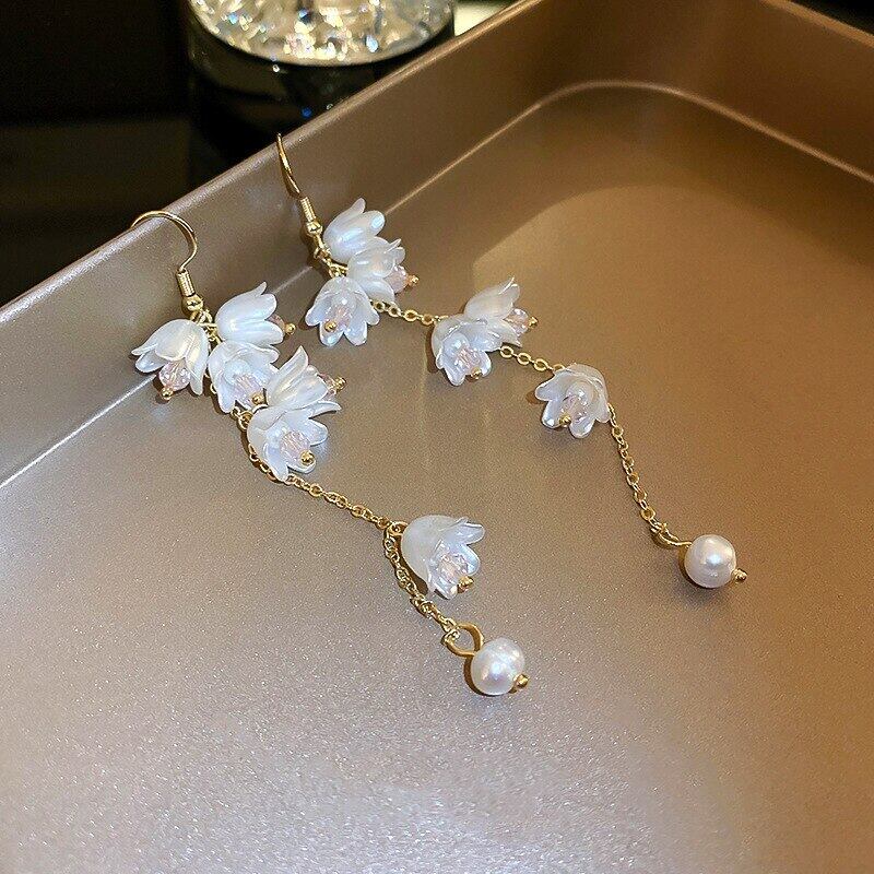 ファイン 14 18K リアルゴールドメッキ蘭の花パールフリンジイヤリング女性ガールジュエリー S925 シルバー針ギフト 真珠 指輪 フラワーデザイン 銀
