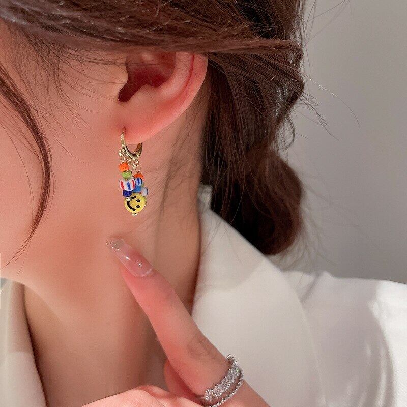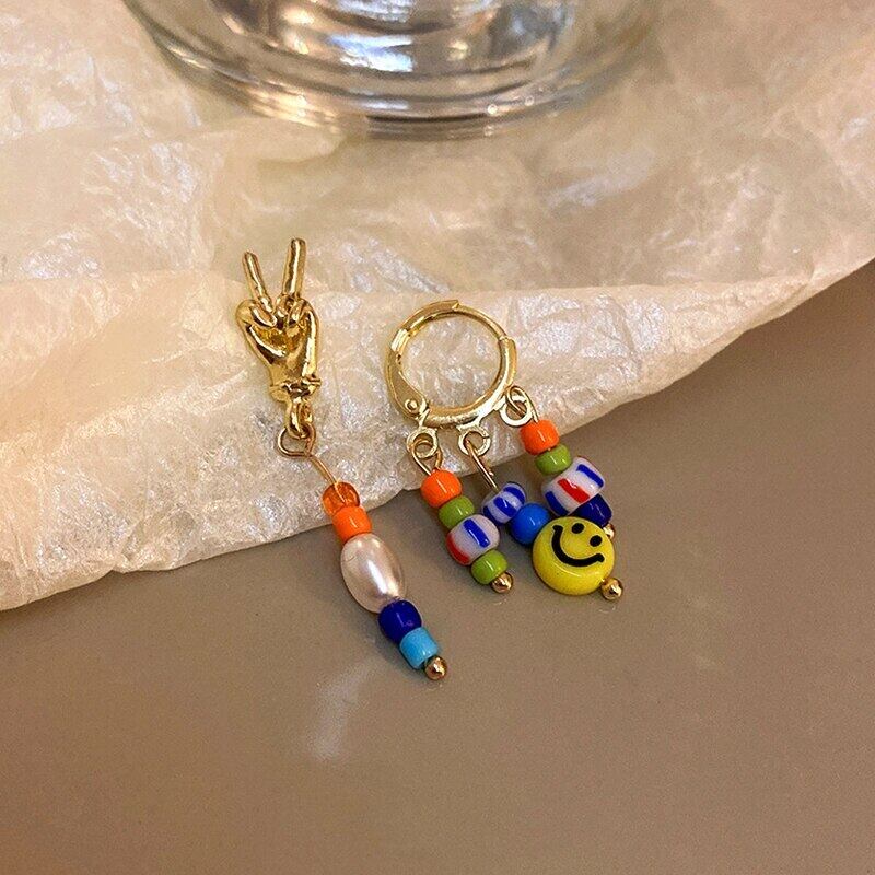 14 18k ゴールドメッキ真珠勝利ジェスチャースマイリーイヤリング女性ガール非対称ジュエリー S925 シルバー針 パール 指輪 銀