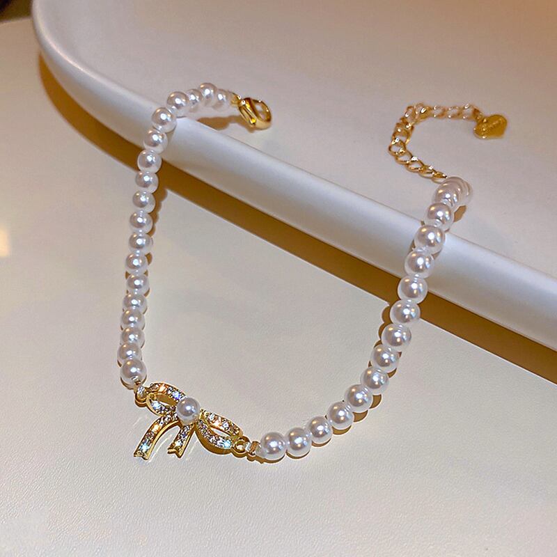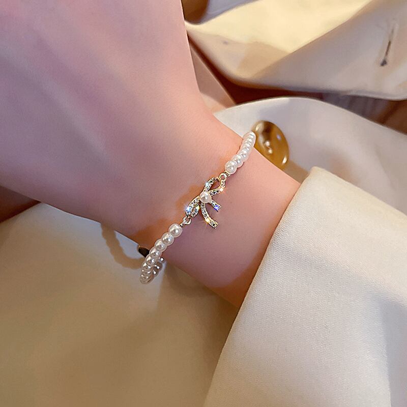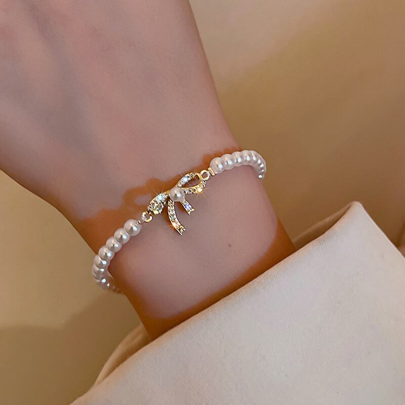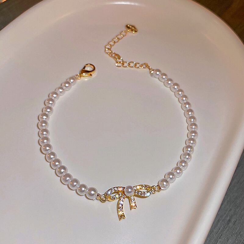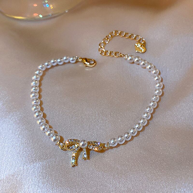 トレンディな 14 18K リアルゴールドバロックパールちょう結びクリスタルブレスレット女性ジュエリー AAA ジルコンビーズチェーンギフト リボン 真珠