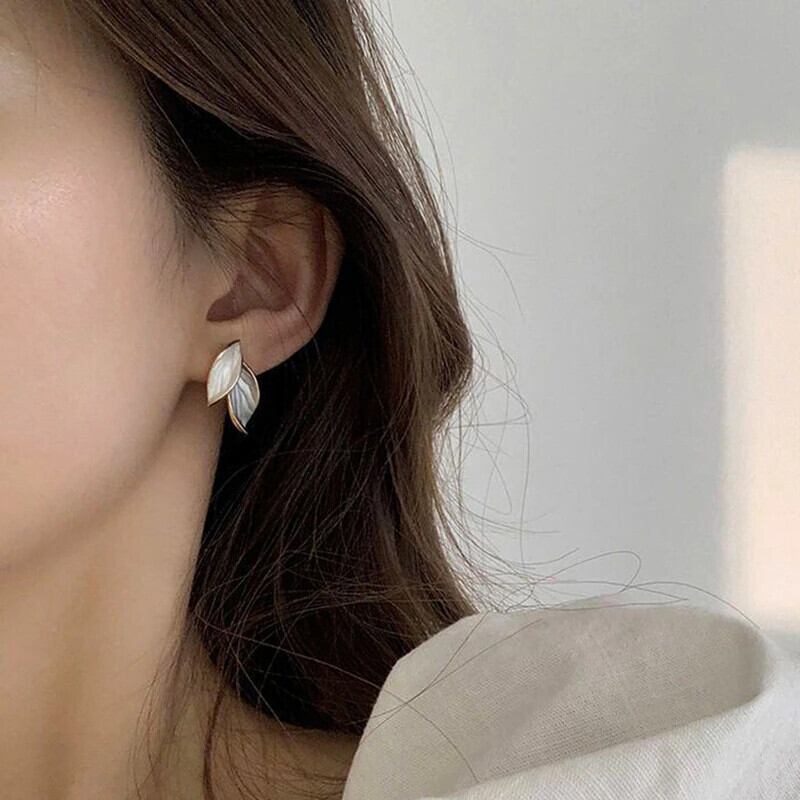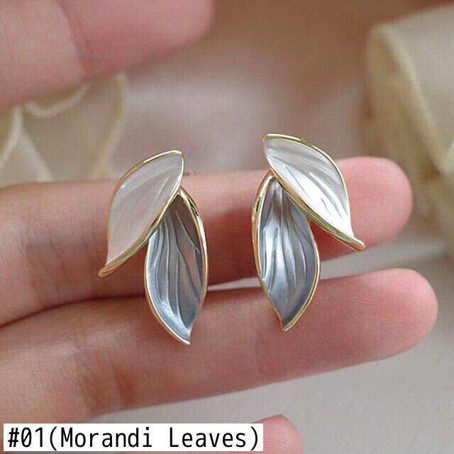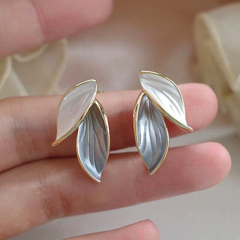 ファイン 14 18k リアルゴールド金メッキモランディエナメル葉スタッドピアス女性ジュエリー S925 シルバー針ギフト イヤリング リング 指輪 銀