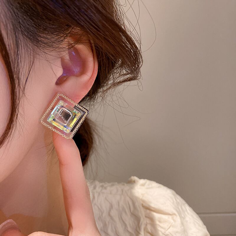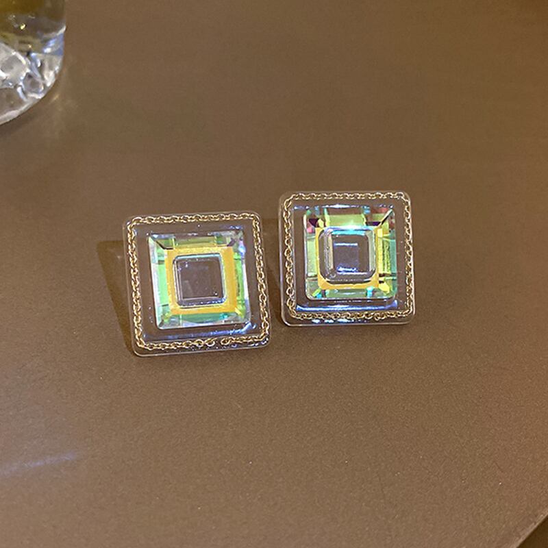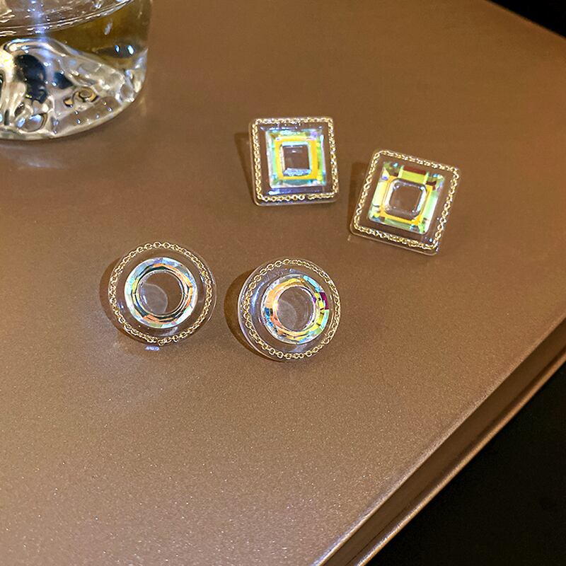 トレンディな 14 18k リアルゴールドメッキ幾何学的透明イヤリング女性ガールジュエリー S925 シルバーニードルスタッドギフト 指輪 銀