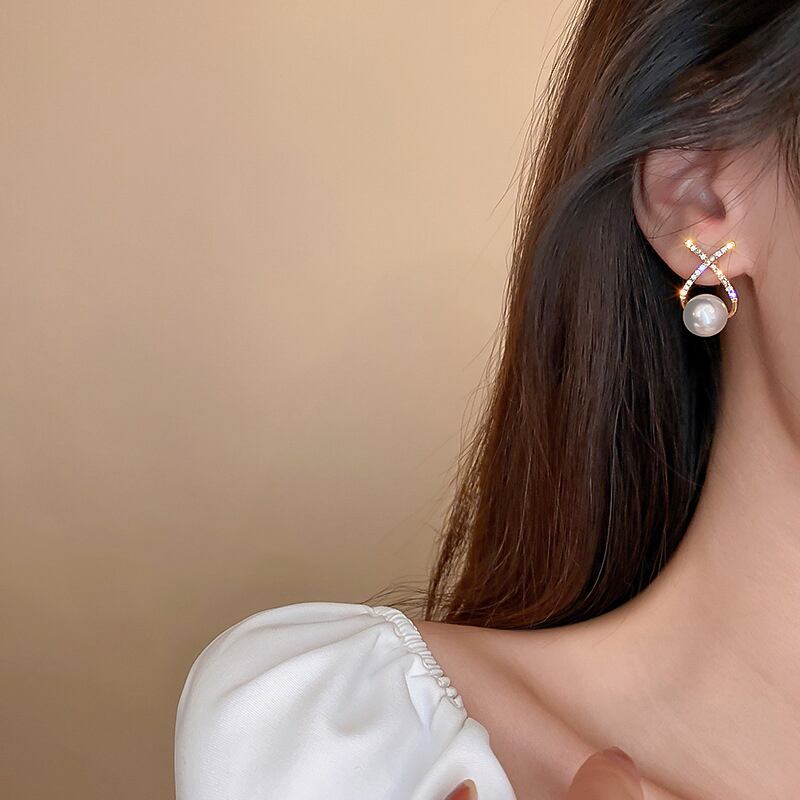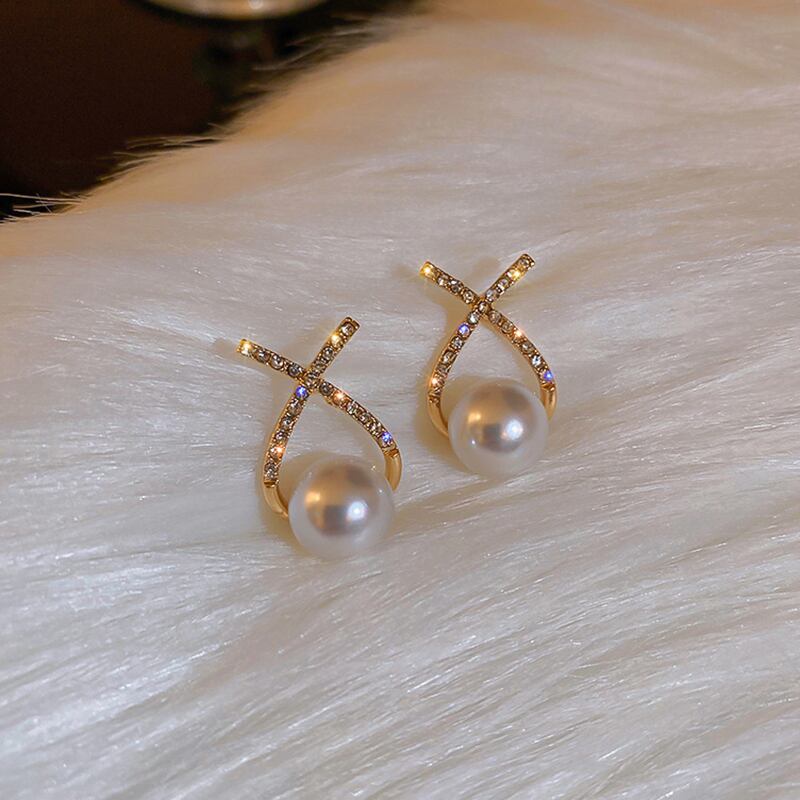 トレンディな 14 18K リアルゴールド手紙真珠イヤリング女性ガールジュエリースタッド S925 シルバー針シャイニー AAA ジルコンギフト パール 指輪 銀