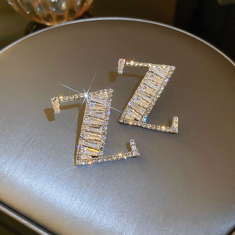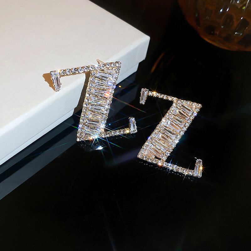 トレンディな 14 18K リアルゴールドメッキジルコン手紙 Z イヤリング女性ガールジュエリー S925 シルバーニードルスタッド AAA ジルコン 指輪 銀