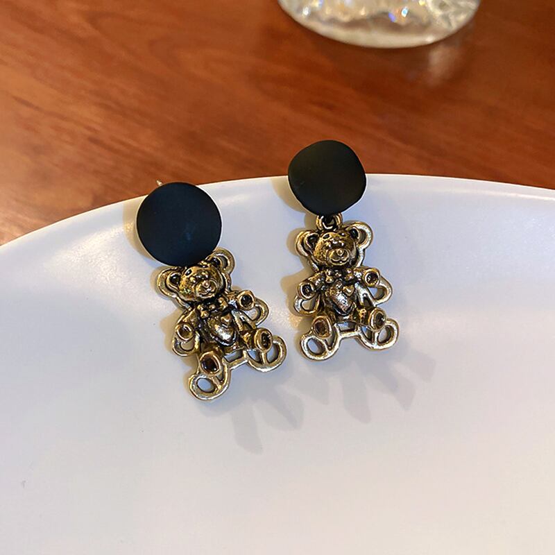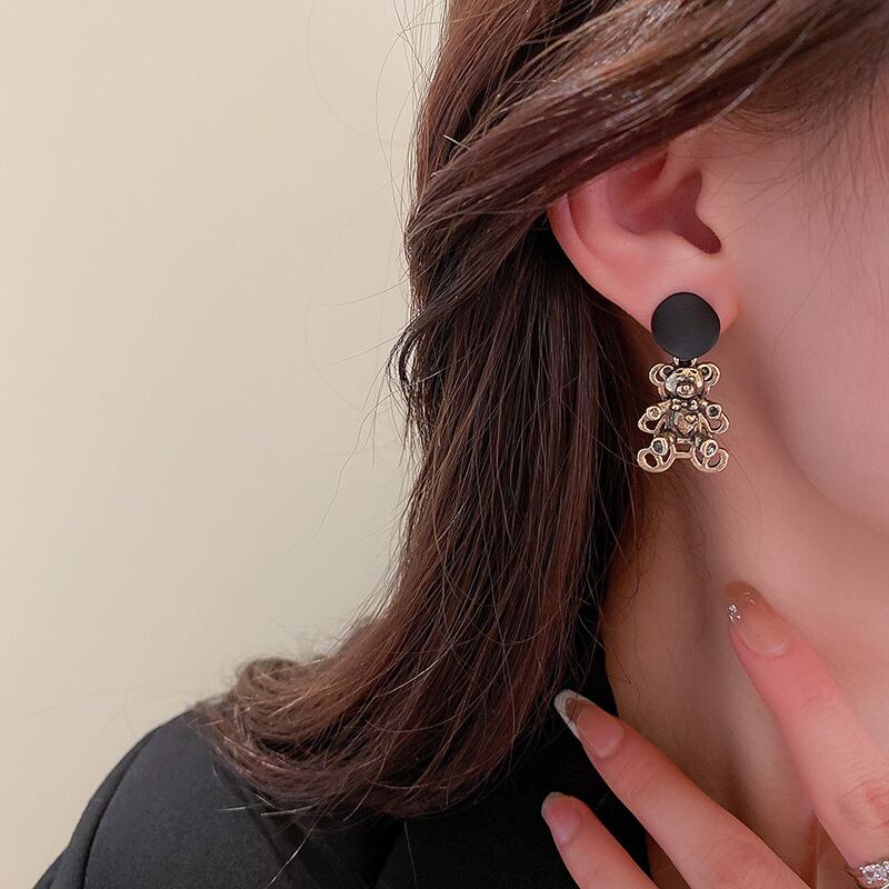 ファイン 14 18k リアルゴールドメッキかわいいクマのイヤリング女性ガール気質ジュエリー S925 シルバー針ギフト 大人ガーリー スウィート キュート カジュアル 指輪 銀