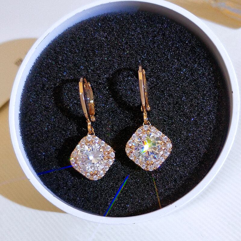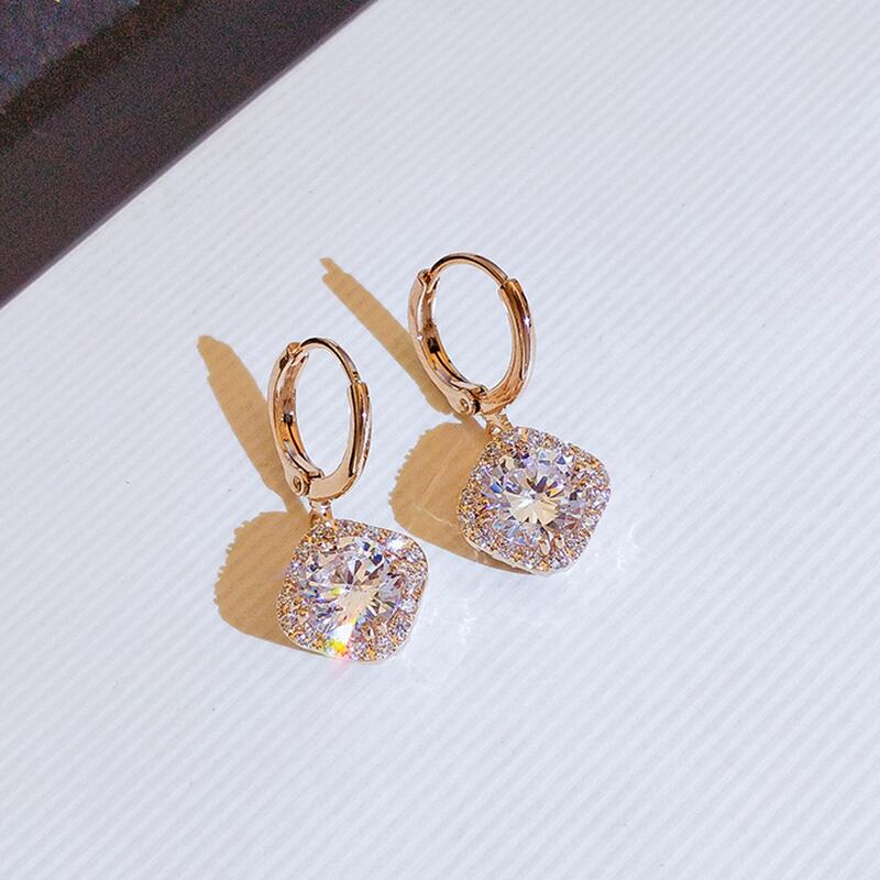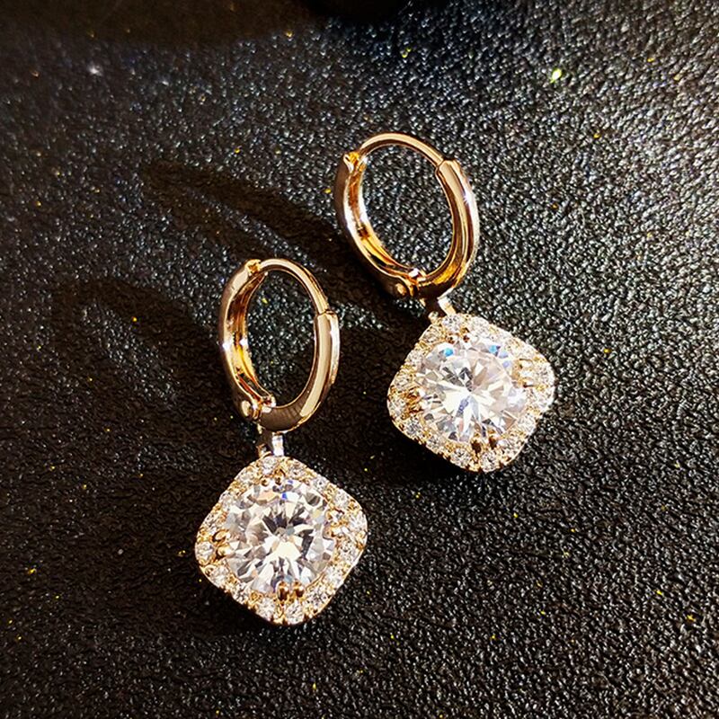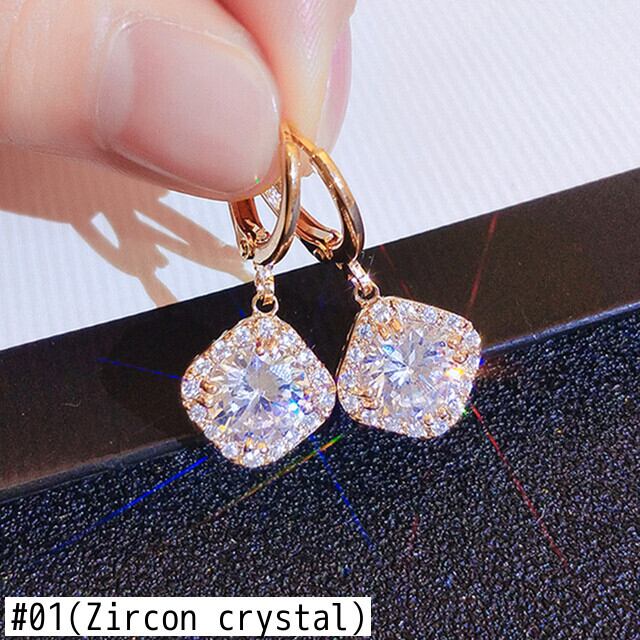 ファイン 14 18K リアルゴールド幾何クリスタルイヤリング女性ジュエリー AAA ジルコン S925 シルバーニードルギフト 指輪 銀