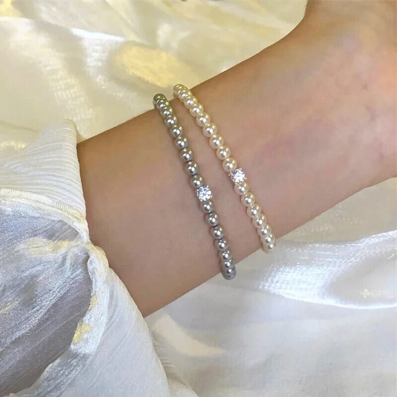 レトロフレンチパールジルコンブレスレットミニマリストジュエリーAAAジルコニアバロックパール誕生日パーティーギフト 真珠 風信子石