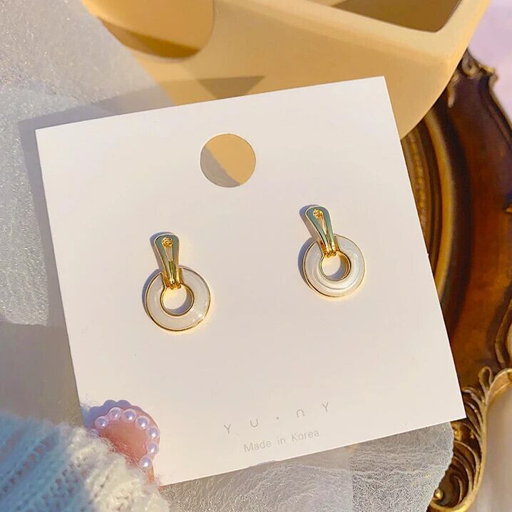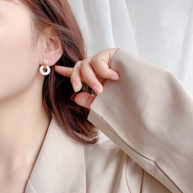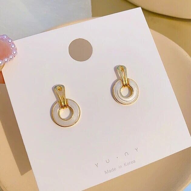 トレンディ 14 18k ゴールドメッキラウンドリングエナメルイヤリングジュエリー S925 シルバー針スタッドインウェディングパーティーギフト 指輪 銀