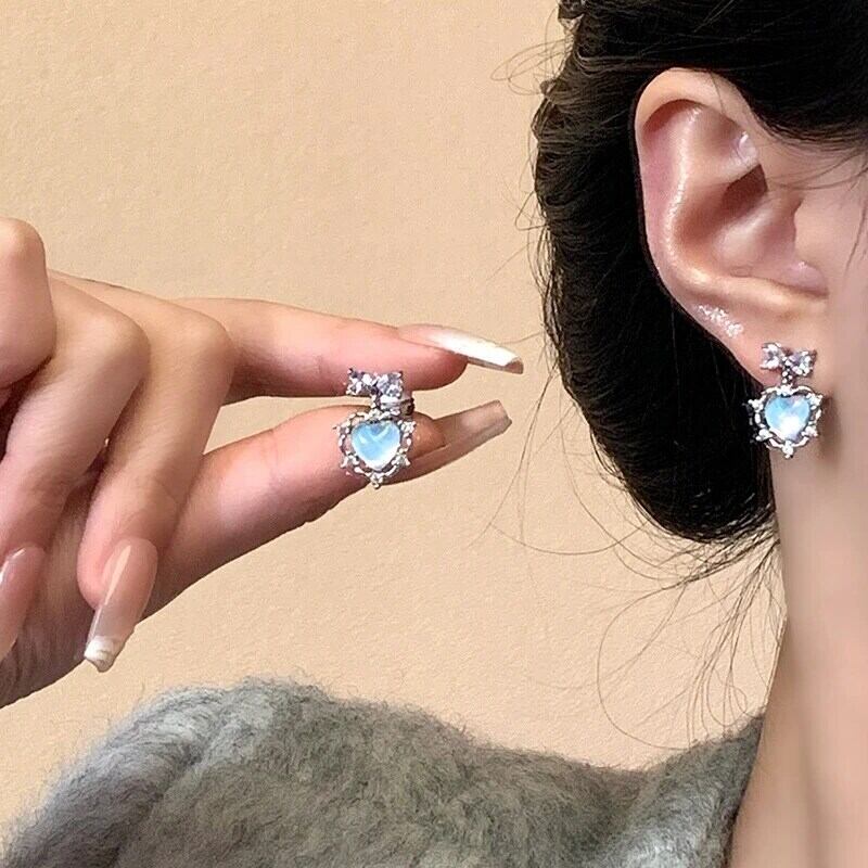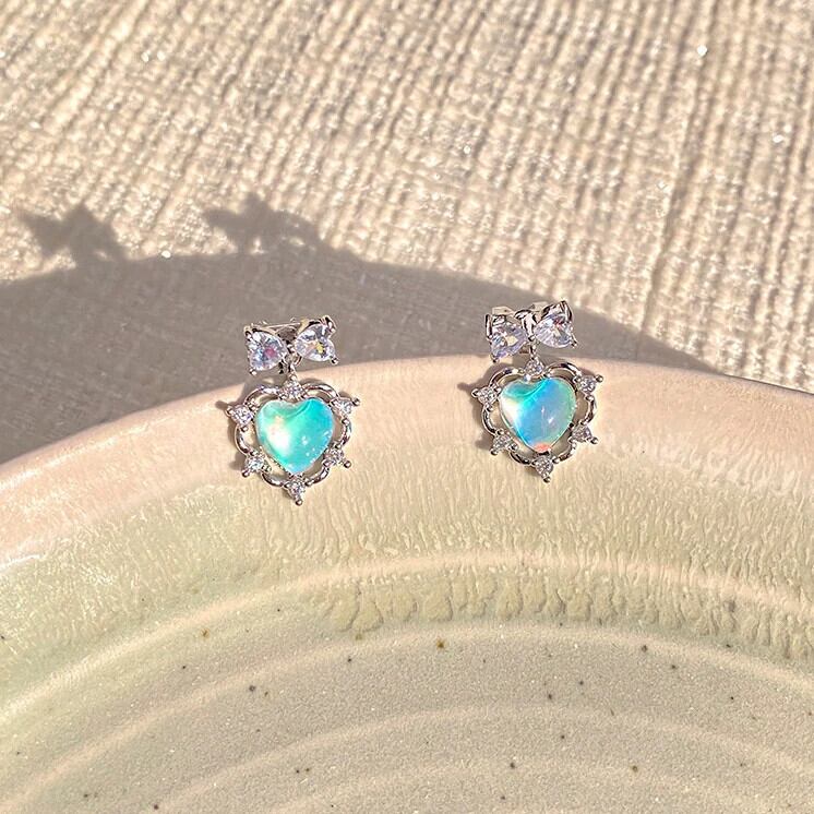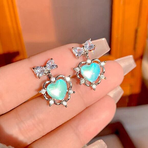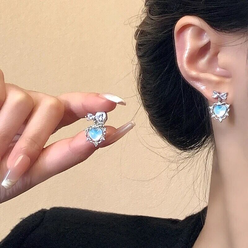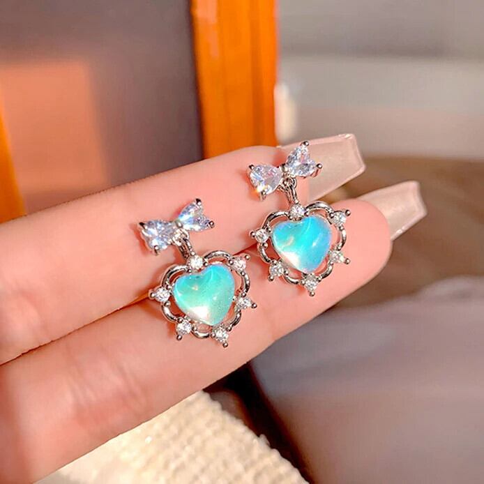 ロマンチックで絶妙氷透明ピーチハートクリスタルリボンイヤークリップジュエリーパーティーギフト