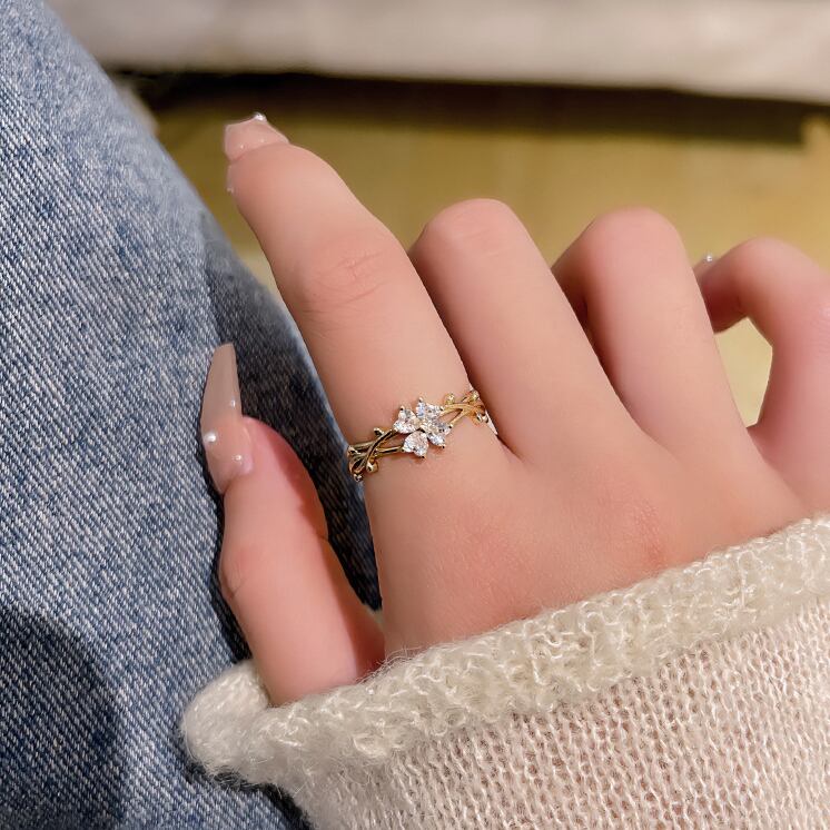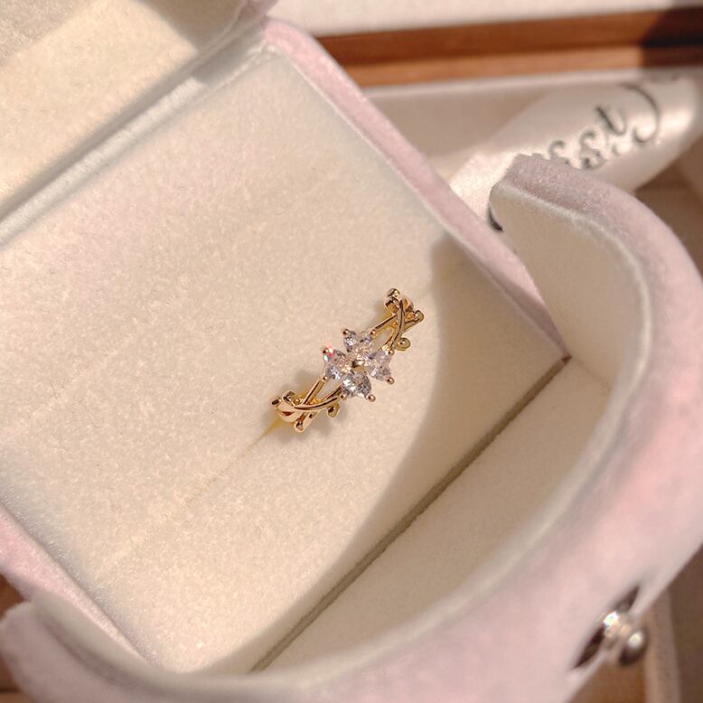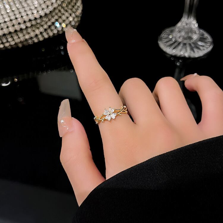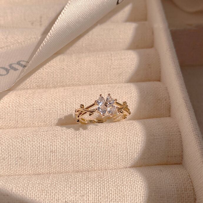 甘くてロマンチック 14K ゴールドメッキ ラッキー クローバー オープン リング レディース ジュエリー AAA ジルコニア パーティー ギフト 大人ガーリー スウィート キュート カジュアル 指輪 風信子石
