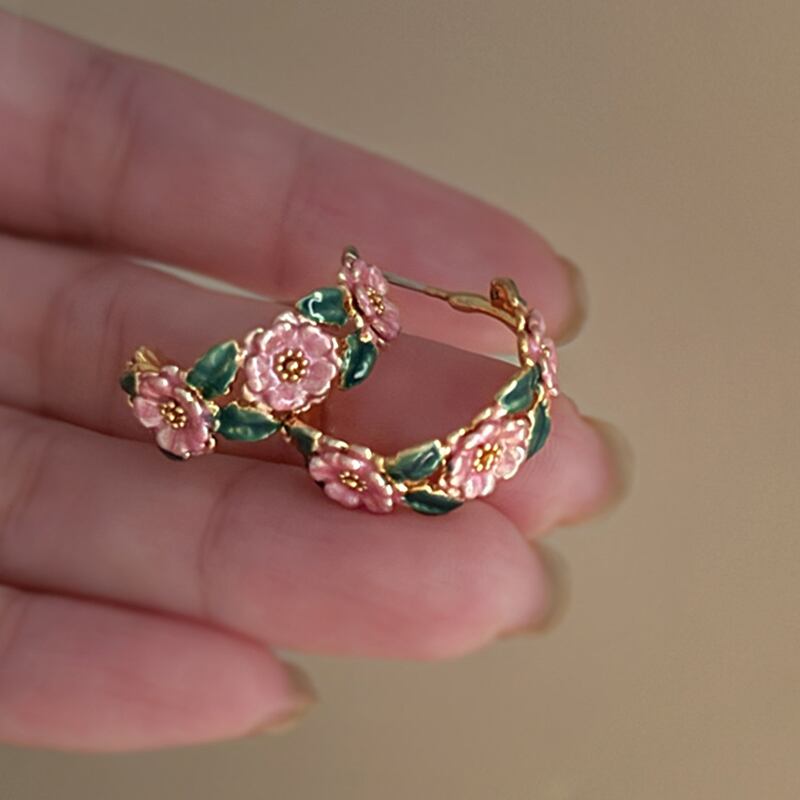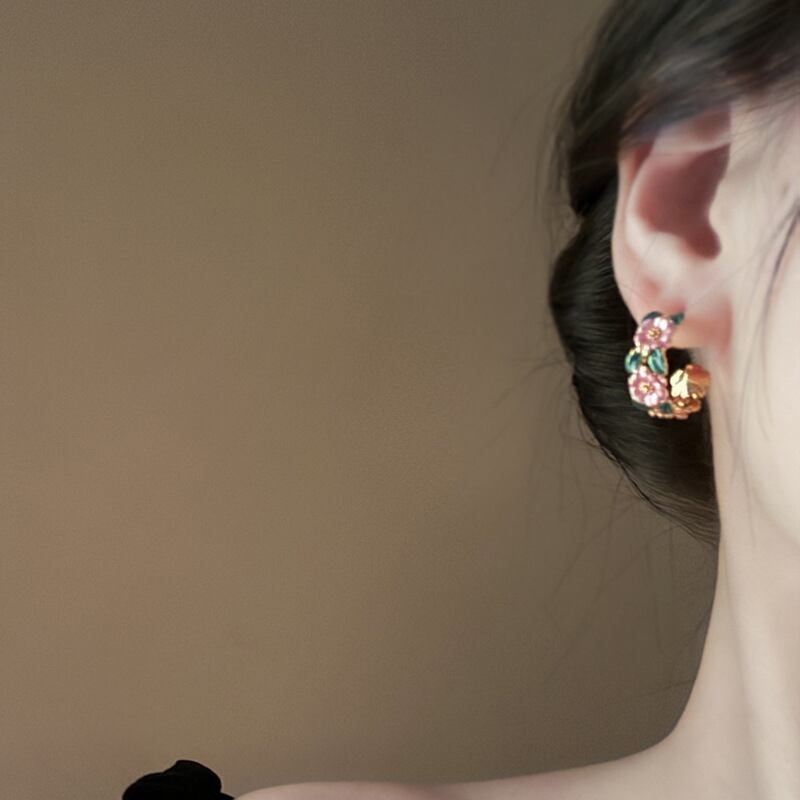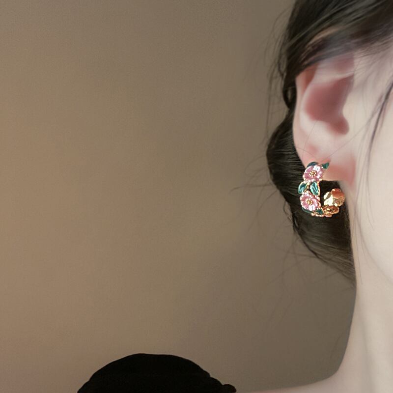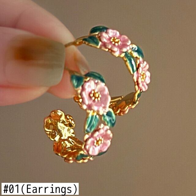 レトロ 14 K ゴールドメッキフラワーリーフイヤリング気質ジュエリー S925 シルバー針研究誕生日パーティーギフト 指輪 フラワーデザイン 銀