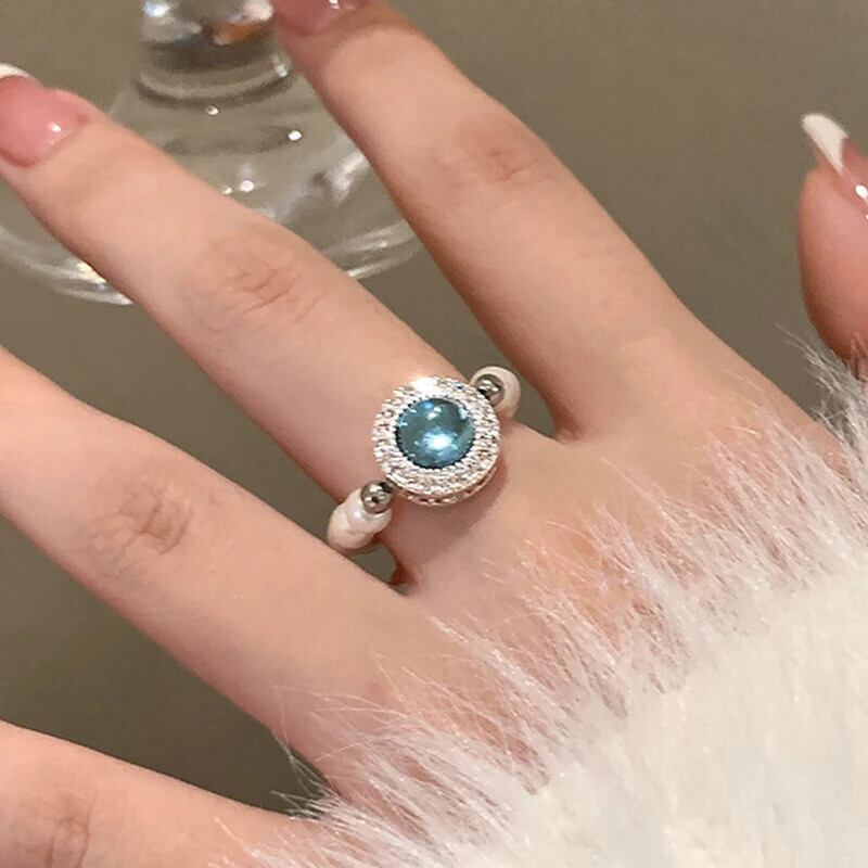 トレンディ月光石パールビーズリングジュエリー AAA ジルコニア誕生日パーティーギフト 指輪 真珠 風信子石