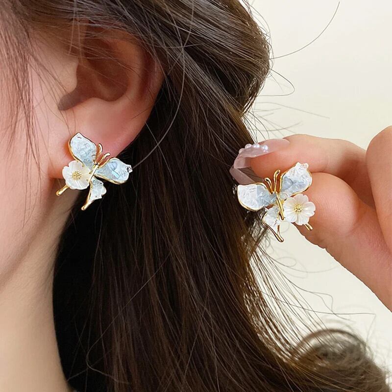 トレンディ 14 K ゴールドメッキクリスタル蝶花イヤリング気質ジュエリー S925 シルバー針 Sutd AAA ジルコンギフト 指輪 フラワーデザイン 銀