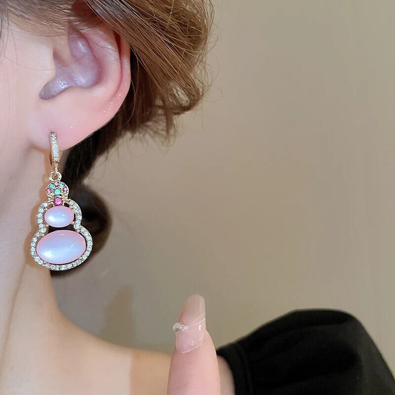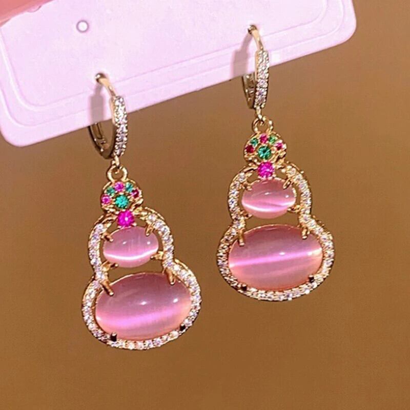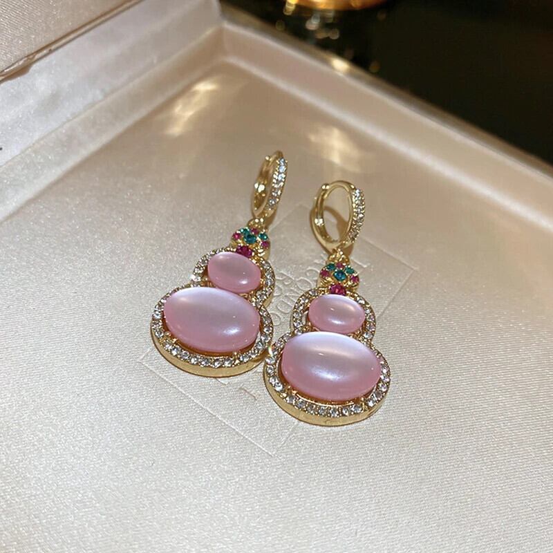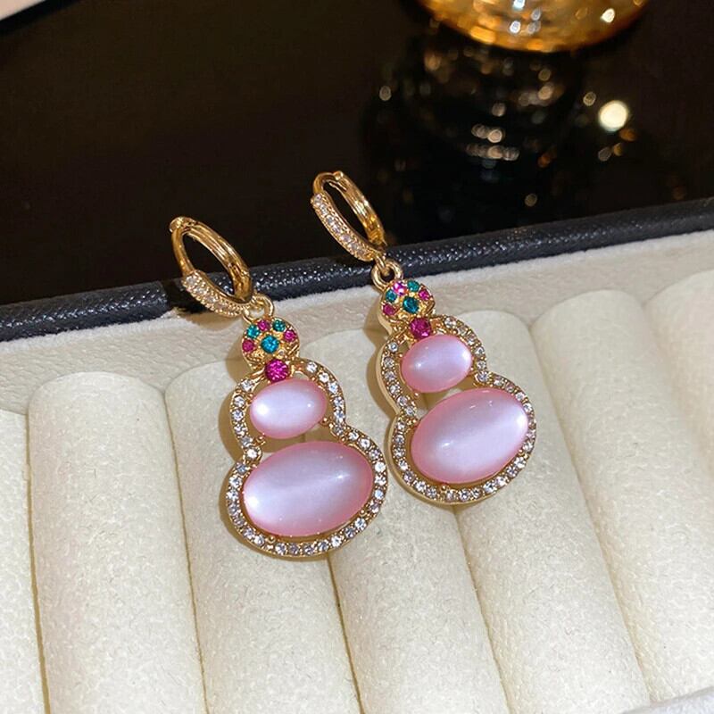 トレンディ 14K ゴールドメッキピンクひょうたんイヤリング気質ジュエリー - 品質 AAA ジルコニアバックルスタイルパーティーギフト 指輪 風信子石