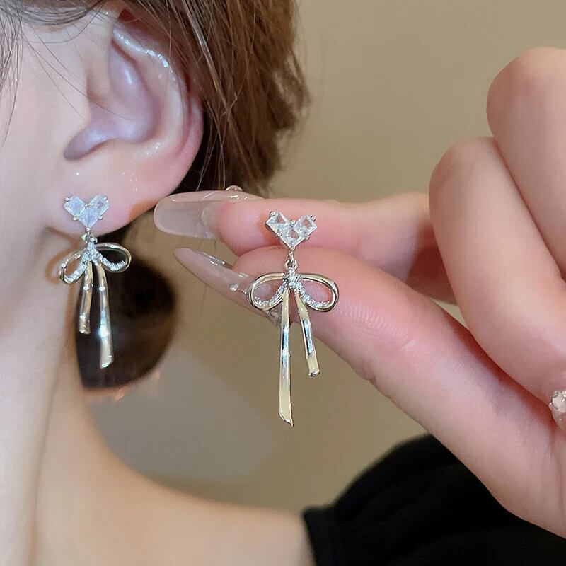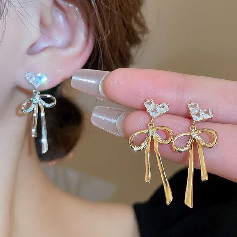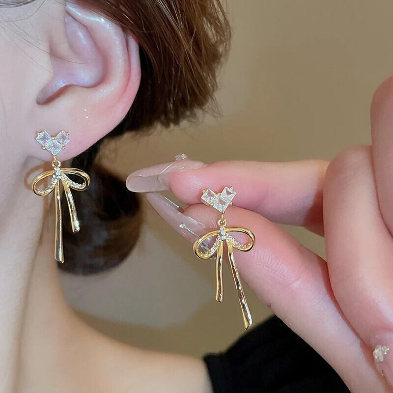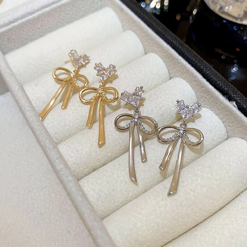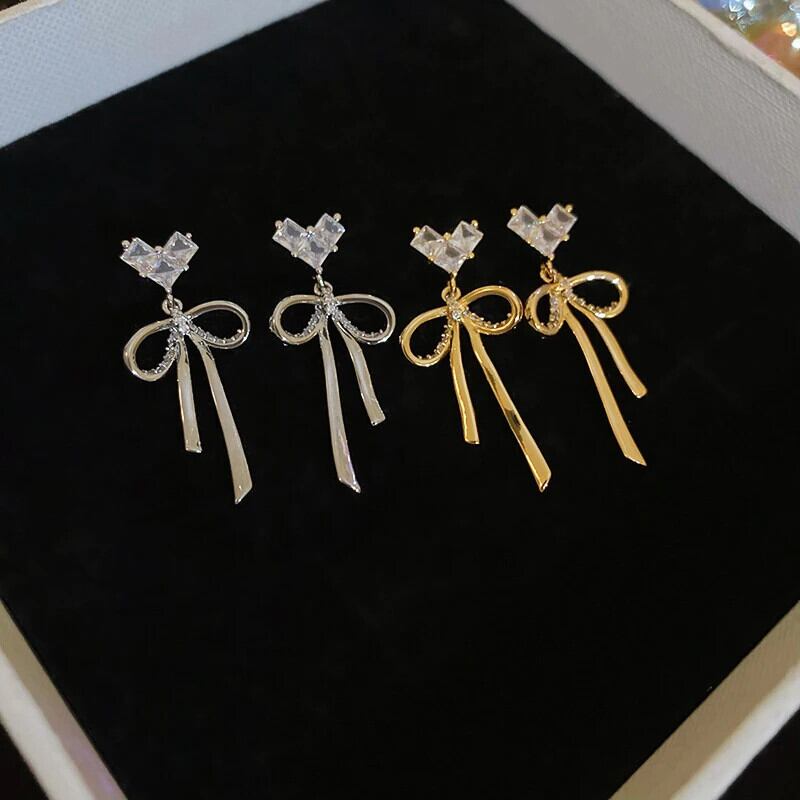 14 18k ゴールドメッキ愛ジルコニア弓イヤリング気質ジュエリー S925 シルバー針 AAA ジルコニアギフト リボン 指輪 銀 風信子石