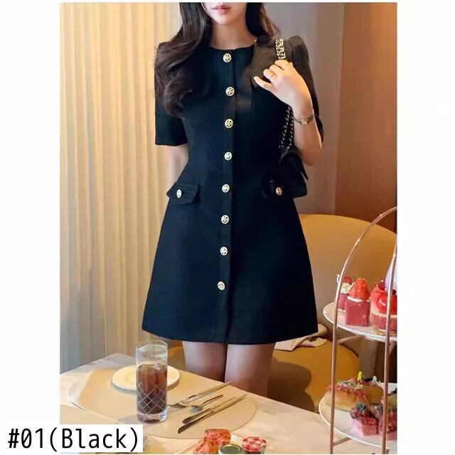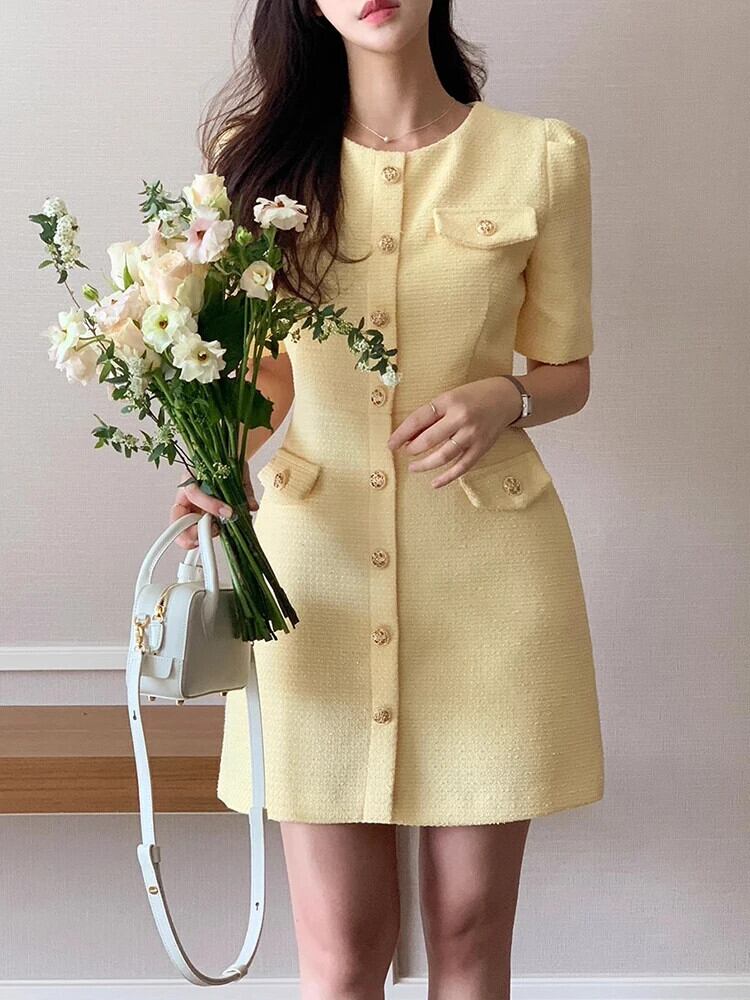 夏気質粗いツイードバブルスリーブドレス サマー 夏物