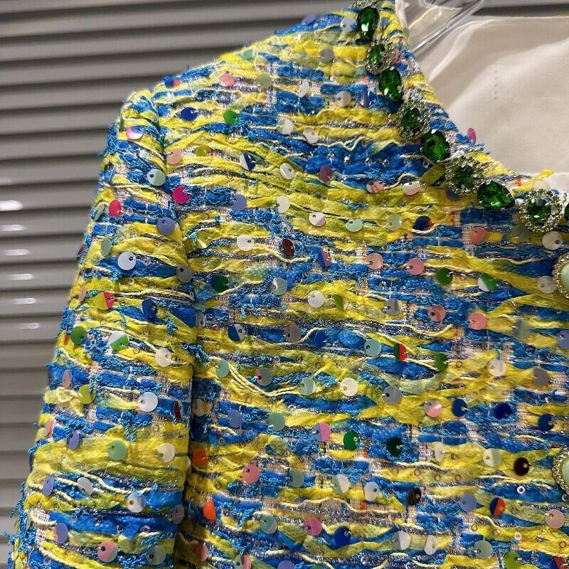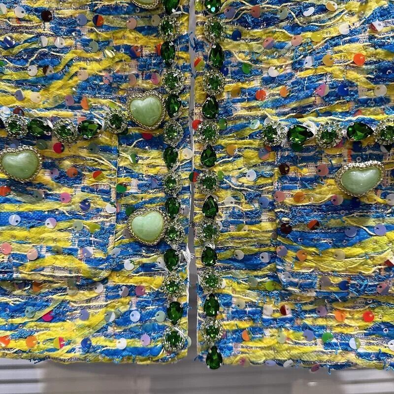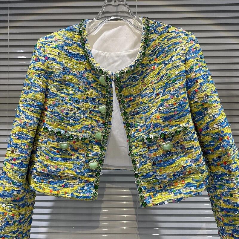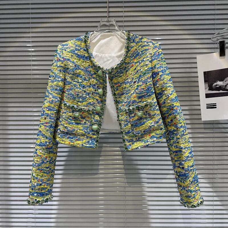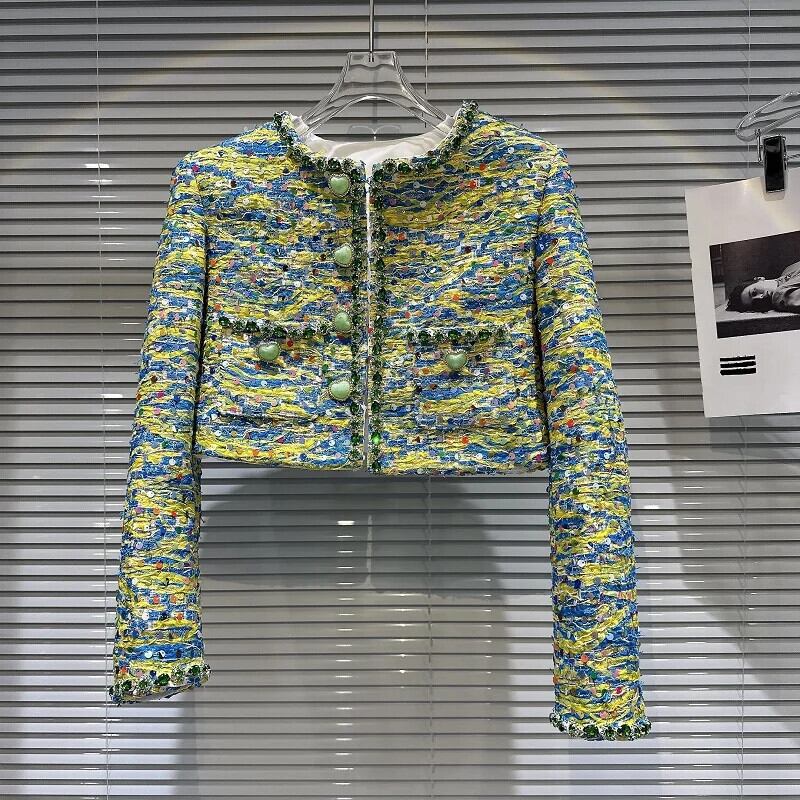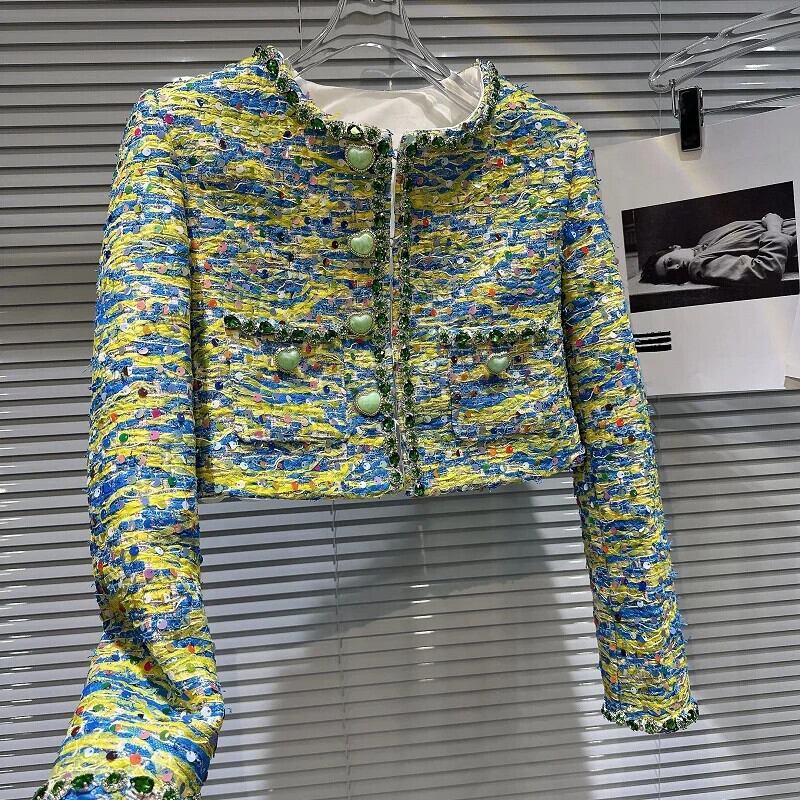 秋香り設定ハートボタンカラフル厚いツイードジャケットショートコート Chaquetas オータム 秋物