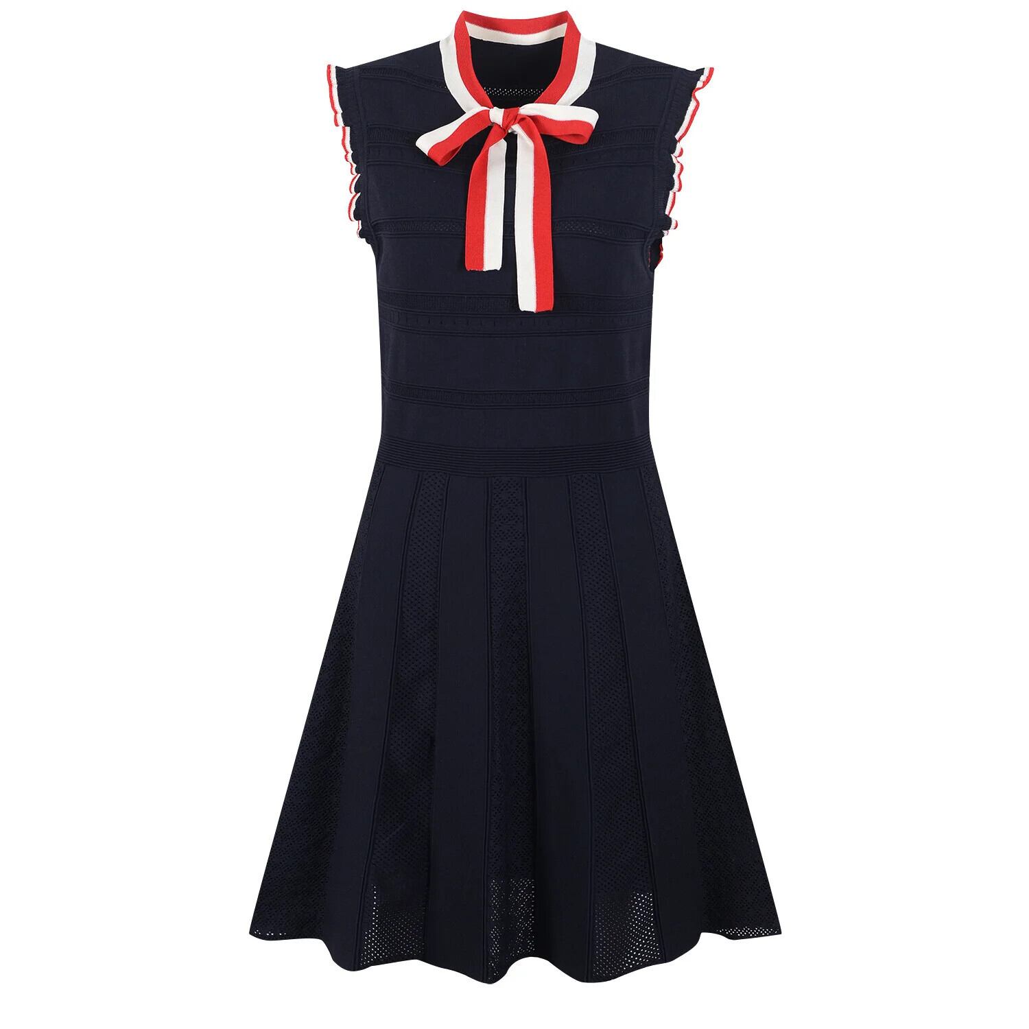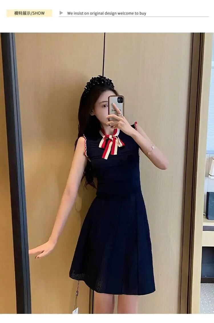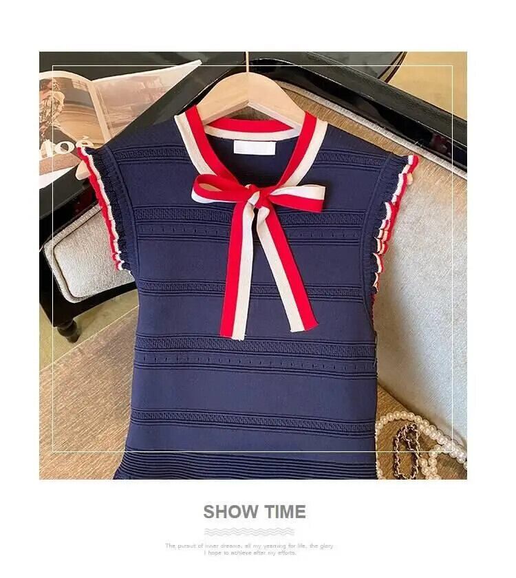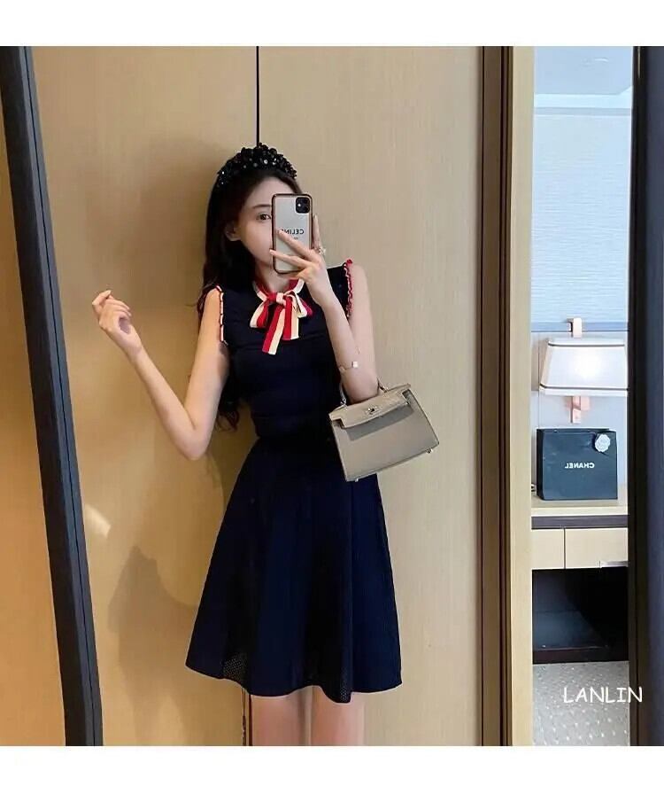 蝶ネクタイ ノースリーブ ニット フリル ドレス 夏 Vestidos リボン サマー 夏物