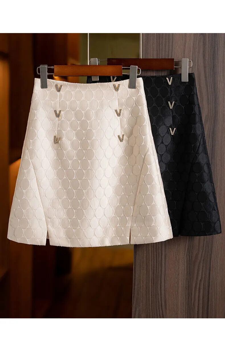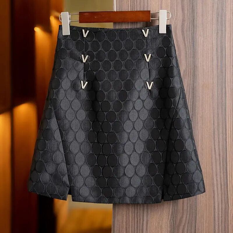 レディース 2024 春秋スタイル ウエスト A ライン ショート ジャカード スカート スプリング 春物 オータム 秋物 Aライン